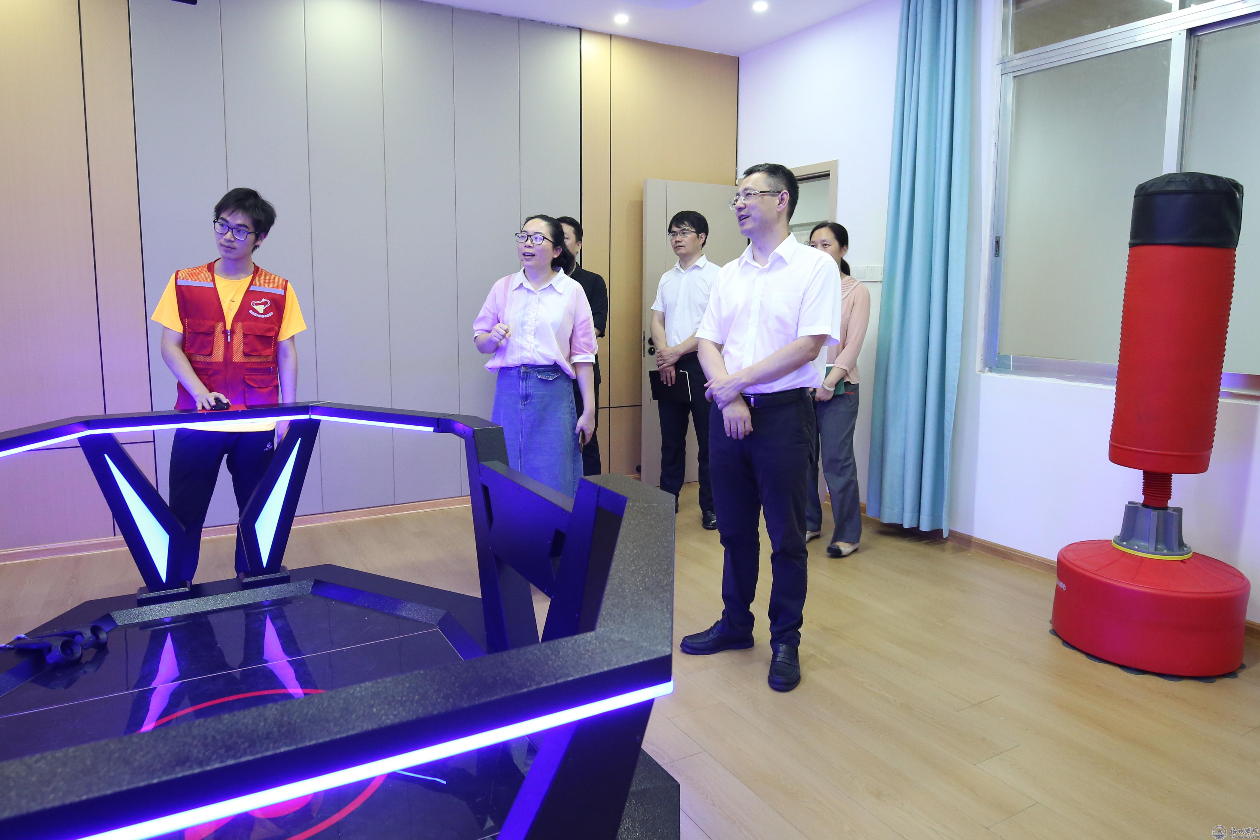 6月13日下午,学校党委书记童晓晖到学生工作处专题调研,实地考察大学生国防教育展厅、心理健康教育中心、大学生就业指导中心等场所,并召开调研座谈会。学校办公室、宣传部负责人陪同调研。