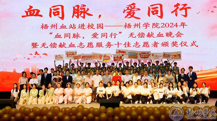 6月15日,2024年“血同脉,爱同行”无偿献血晚会暨献血志愿服务十佳志愿者颁奖仪式在我校举办,活动由梧州市中心血站主办,经济学院青年志愿者分会承办。梧州市中心血站负责人,学生工作部(处)、经济学院班子成员,梧州职业学院、梧州医学高等专科学校、各学院青年志愿者分会的代表参加活动。