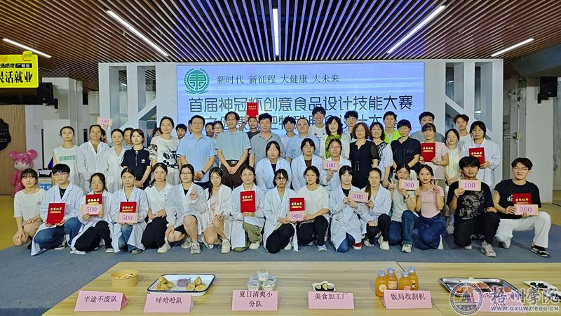 6月15日晚,食品与制药工程学院在体育馆负一楼邑谷中心举行首届神冠杯创意食品设计技能大赛之健康减肥特殊膳食设计比赛决赛。广西神冠胶原生物集团有限公司总裁沙俊奇、总裁助理温书,学校发展规划处处长刘文丛、工会副主席区敏涓受邀出席。食品与制药工程学院领导班子成员、食品科学与工程专业师生代表等100余人到场观摩。