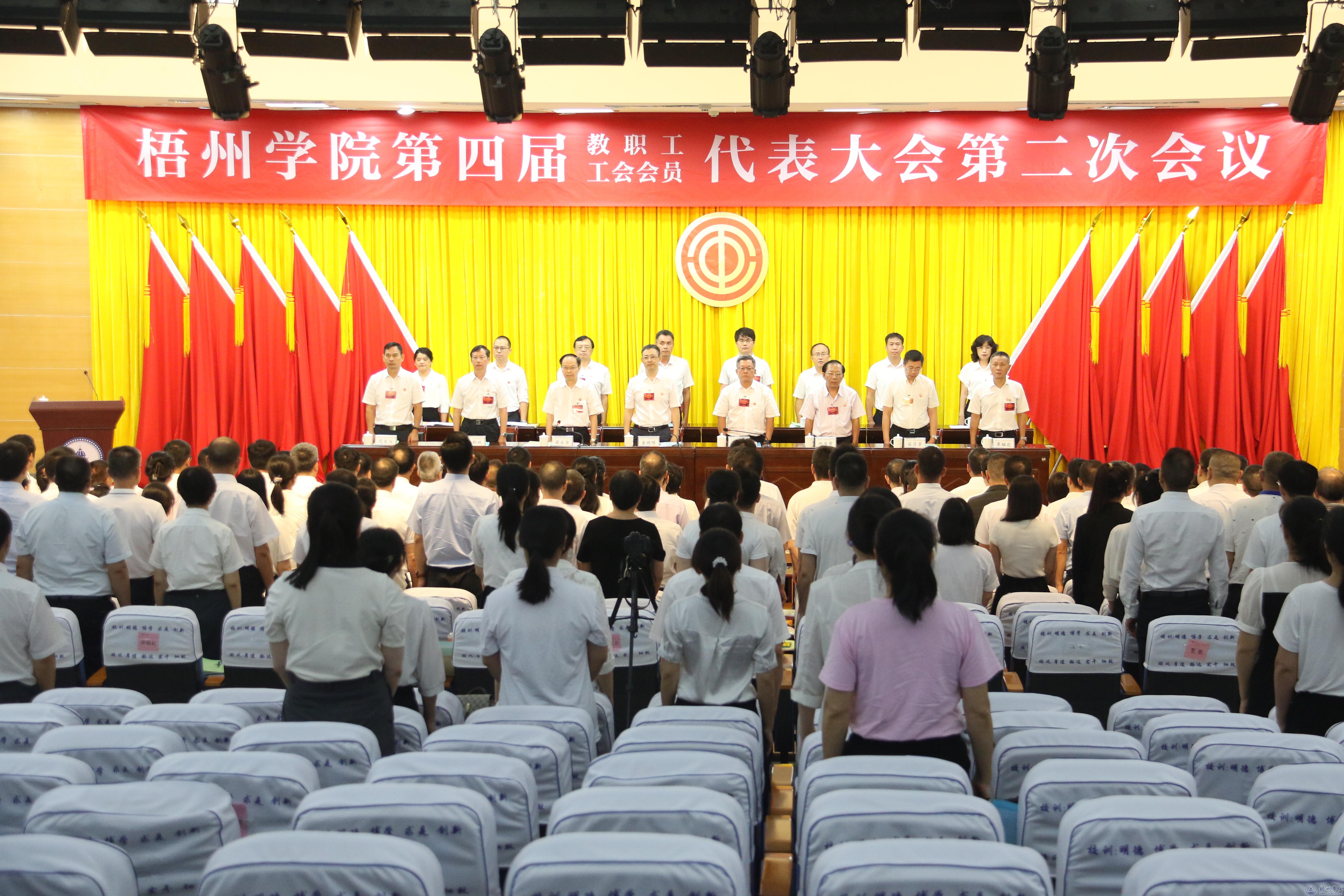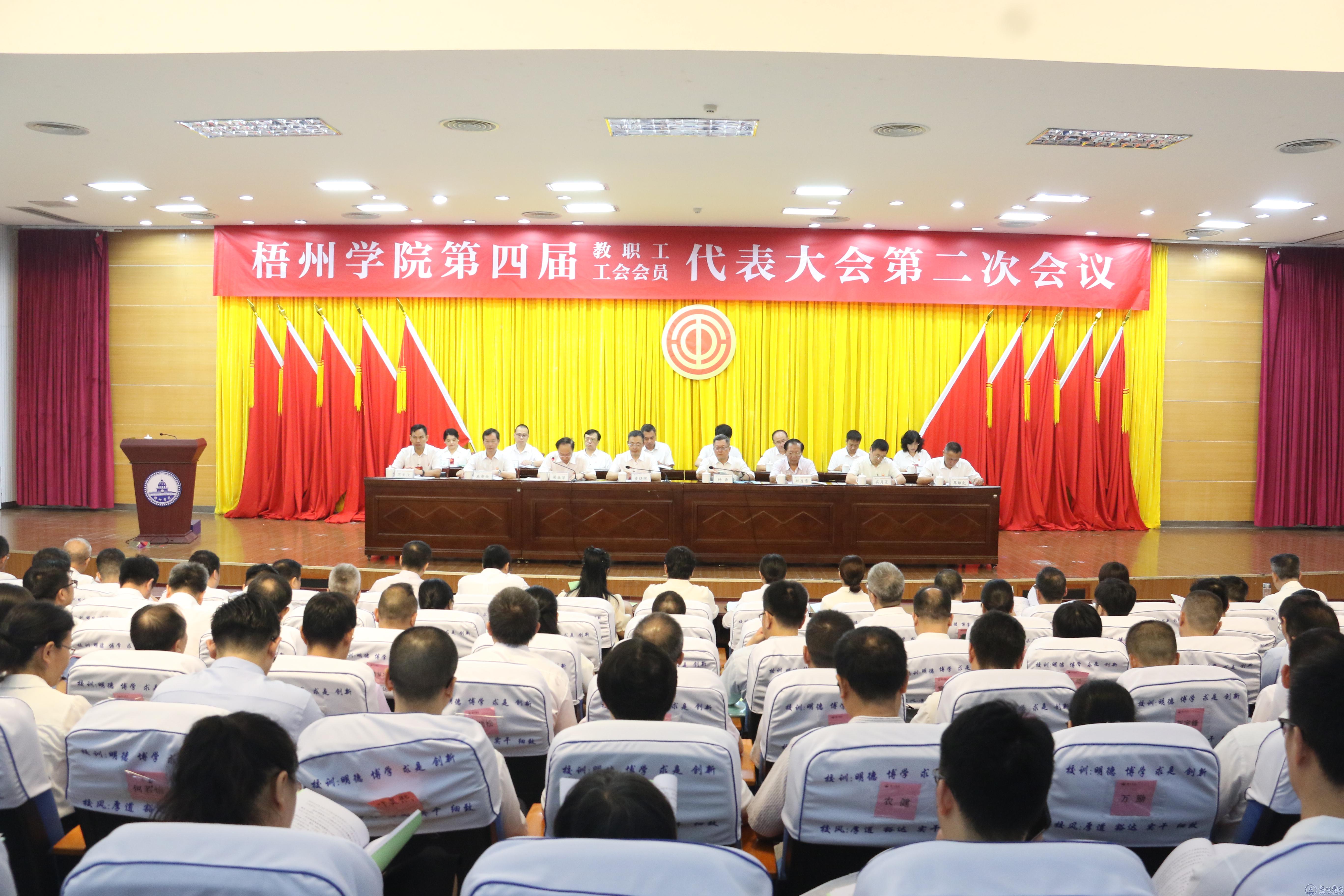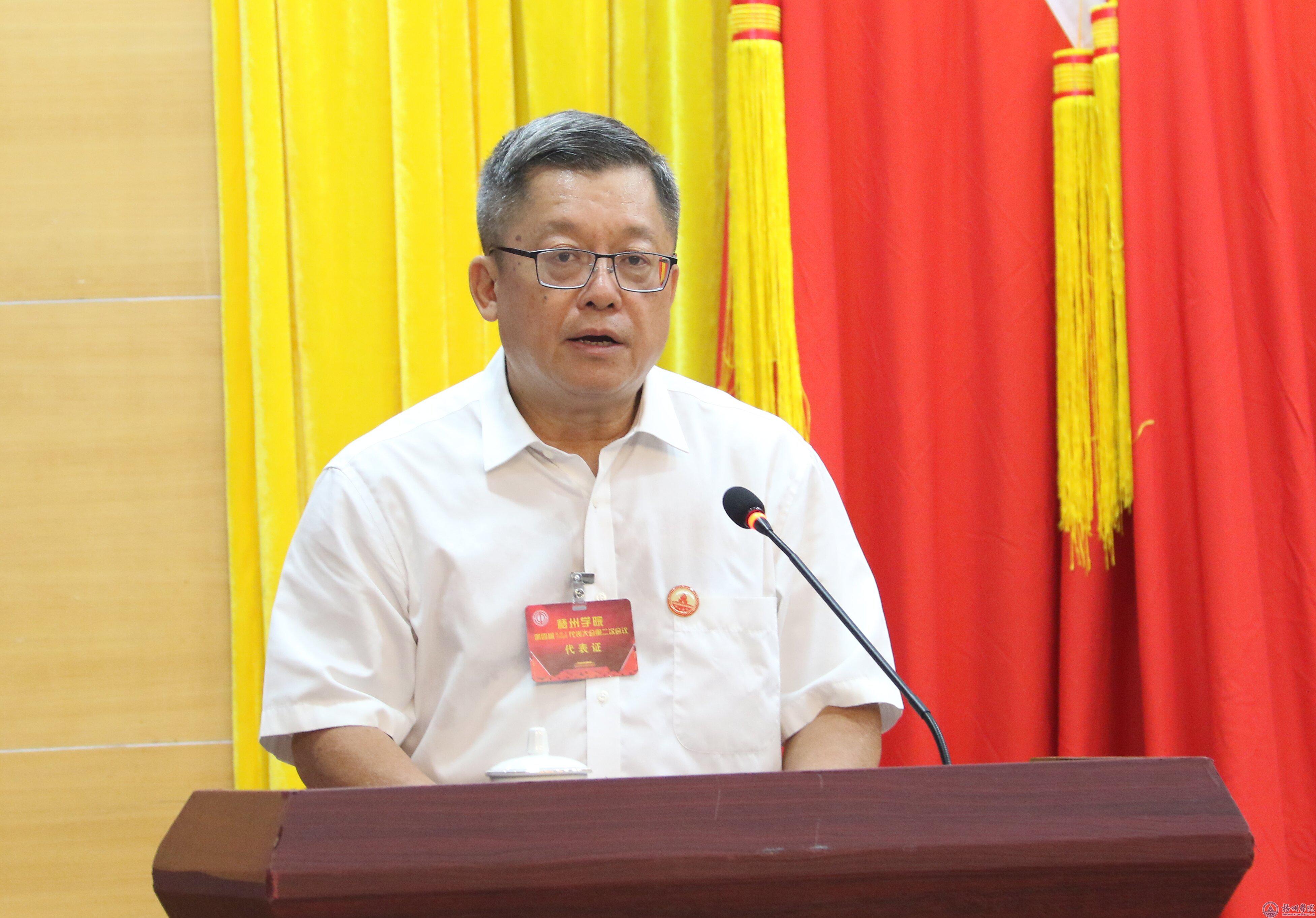 上午10时50分,举行会议闭幕式,闭幕式由学校党委副书记梁业华主持。会议审议通过了《校长工作报告》《梧州学院2023年度财务决算和2024年度预算报告》。