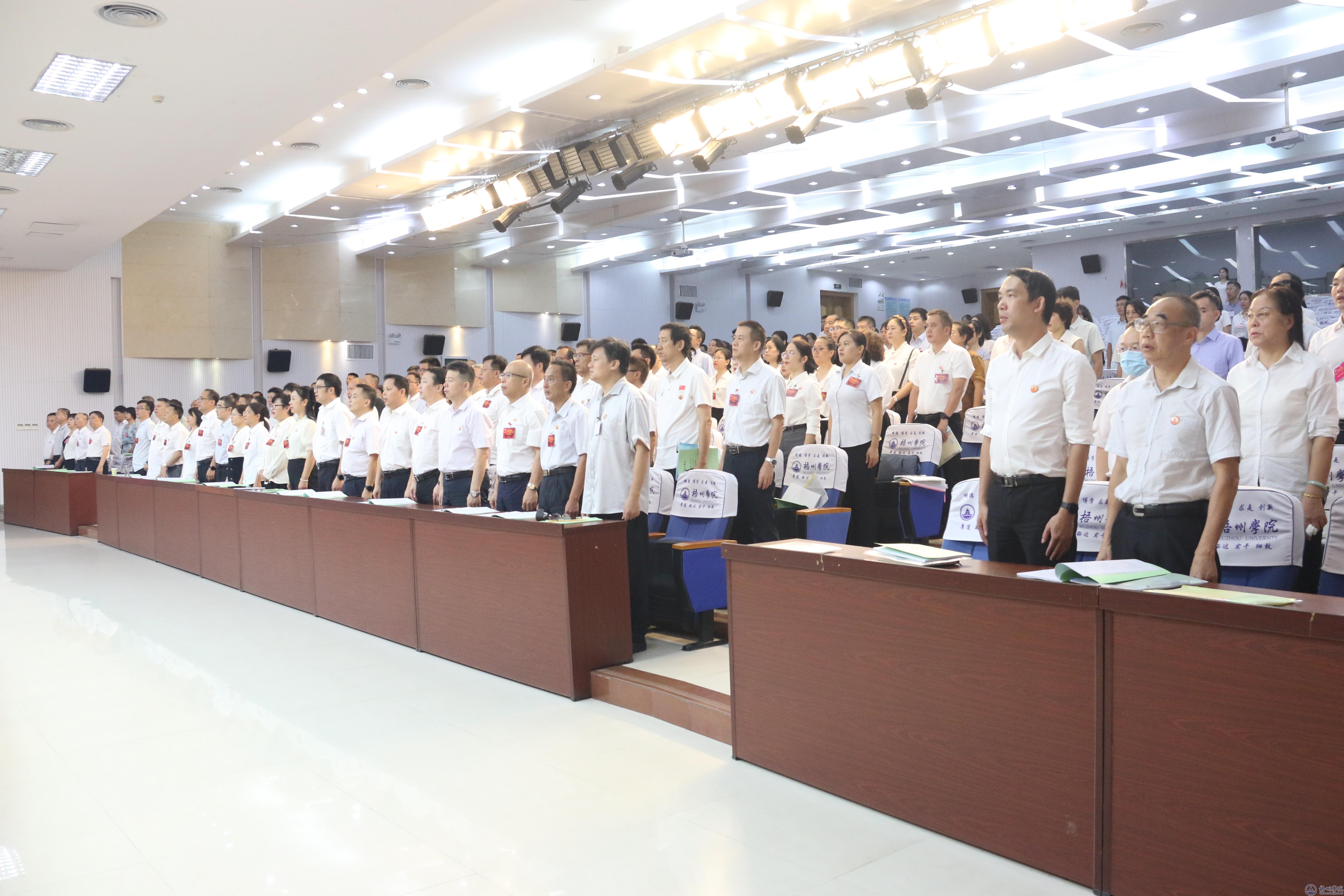 上午8时25分,开幕式在嘹亮的国歌声中拉开帷幕。学校领导童晓晖、杨奔、梁业华、邱房贵、麻新纯、宾月景、范生汝、覃雄彪出席开幕式。 170名正式代表、50名列席代表参加开幕式。开幕式由学校党委副书记梁业华主持。