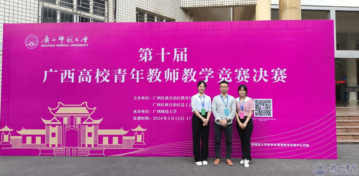 5月15日至17日,自治区教育厅、自治区总工会联合在广西师范大学举办第十届全区高校青年教师教学竞赛。根据自治区教育厅、自治区总工会《关于公布第十届全区高校青年教师教学竞赛获奖名单的通知》(桂教教师〔2024〕40 号)精神,全区共有 21 名教师获一等奖,39 名教师获二等奖,73 名教师获三等奖。我校陈梅老师获文科组二等奖,庞光垚老师获工科组三等奖,程美慧老师获得思政组三等奖。