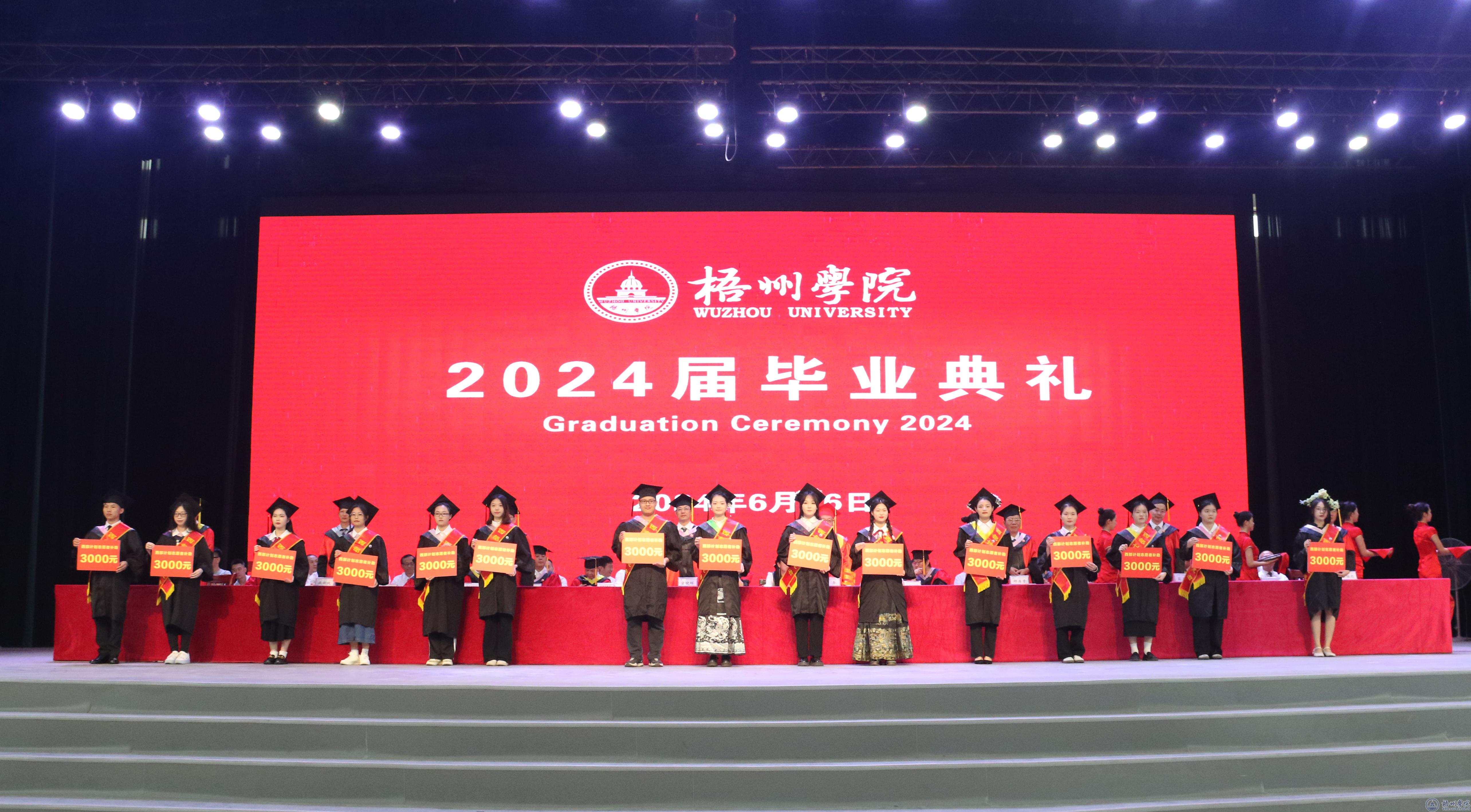 典礼现场,毕业生代表、教师代表、在校生代表、校友代表深情演绎了节目《青春出发》《茶萝娘》《起风了(梧院版)》《踏板操+齐舞》《记住你》《你是》,在扣人心弦的歌舞中回忆青春岁月,深深感激同行路上的你我他。