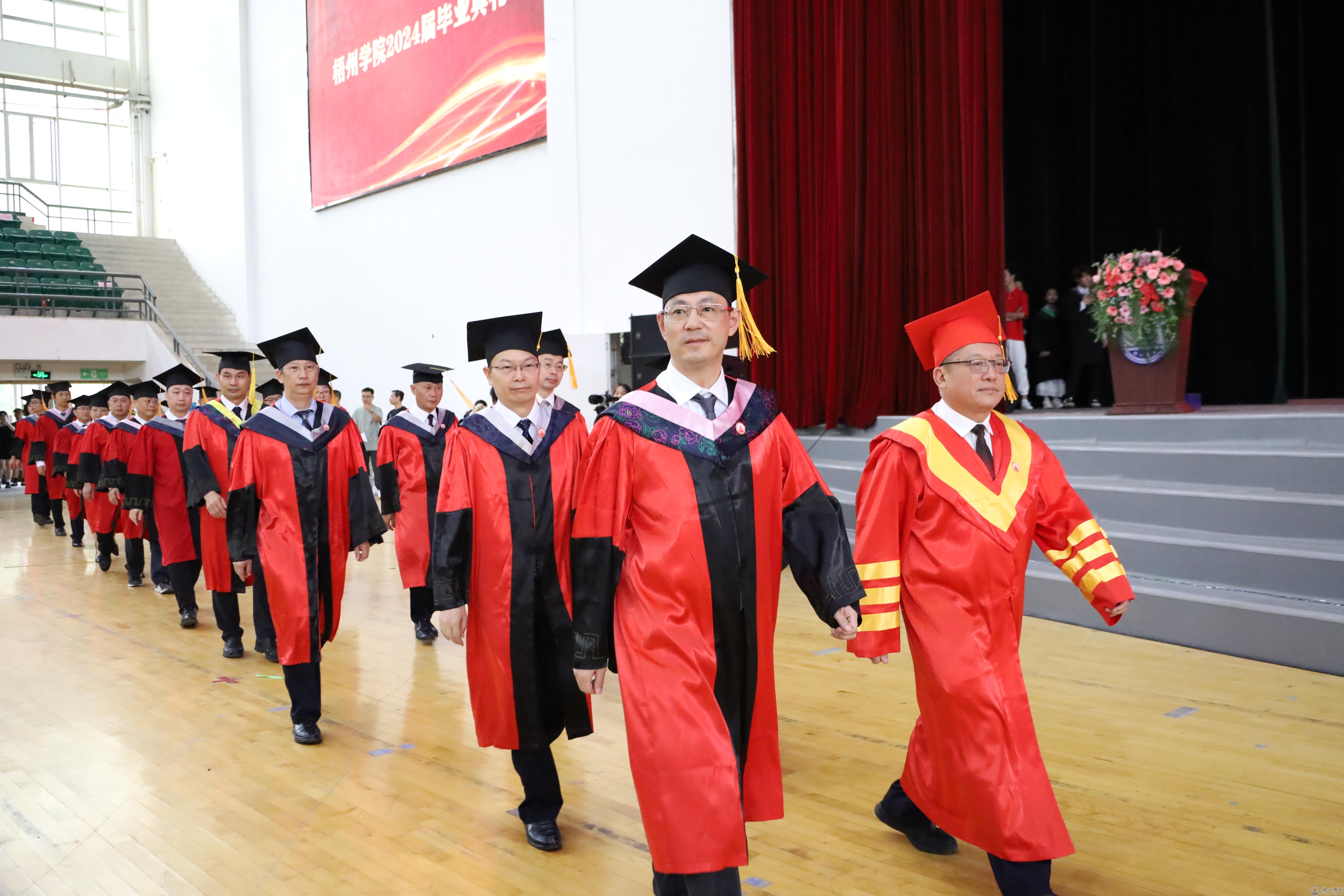 6月26日上午,学校在体育馆三楼主会场举行2024届毕业典礼。学校领导童晓晖、杨奔、梁业华、邱房贵、麻新纯、宾月景、范生汝、覃雄彪出席典礼。家长代表、特邀校友代表、学校各职能部门、群团组织和教辅单位主要负责人,各二级学院党政主要负责人、党委副书记、团委书记、毕业班辅导员、班主任、教师代表,以及全体2024届在校毕业生齐聚一堂,共同见证2024届学子顺利毕业的时刻。典礼由学校党委副书记梁业华主持。