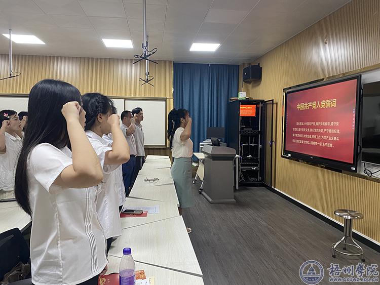 座谈会上,钟海明带领大家回顾了毕业生党员入党时的情景,让大家时刻牢记共产党员的身份,勉励大家积极向上,到国家最需要的地方去,为祖国建设做贡献。座谈会上,全体师生党员面向党旗,重温了入党誓词。