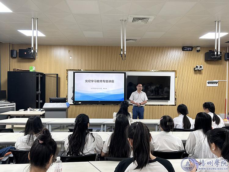 韦天峰为毕业生党员上在校最后一堂党课,教育引导大家要强化纪律意识,做到廉洁自律,扣好人生第一颗扣子。