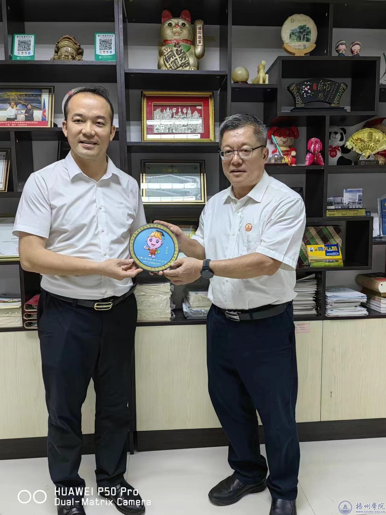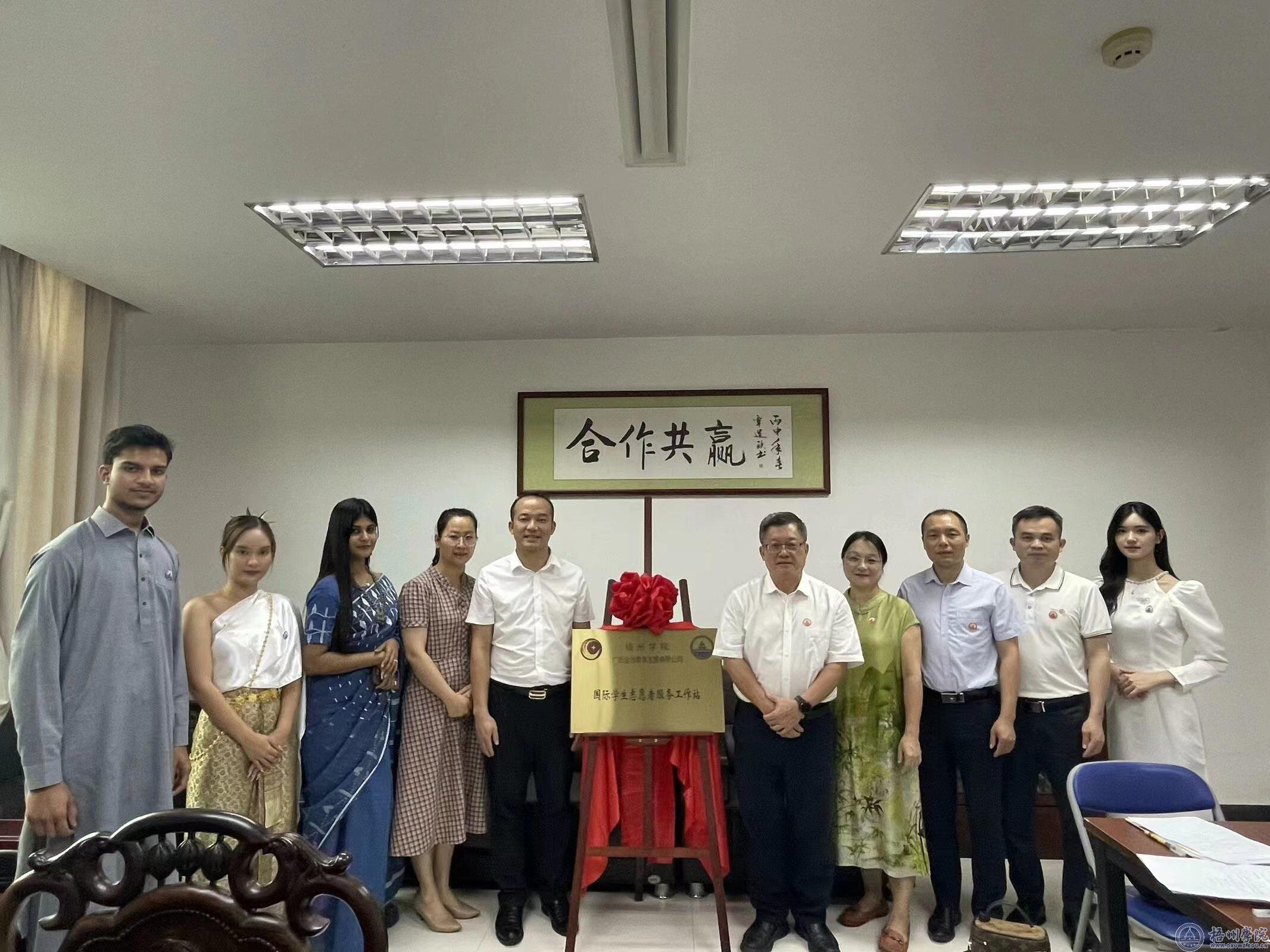仪式结束后双方互赠纪念品。这是继我校与梧州市中医医院共建国际学生志愿者服务工作站后建立的第二个工作站。