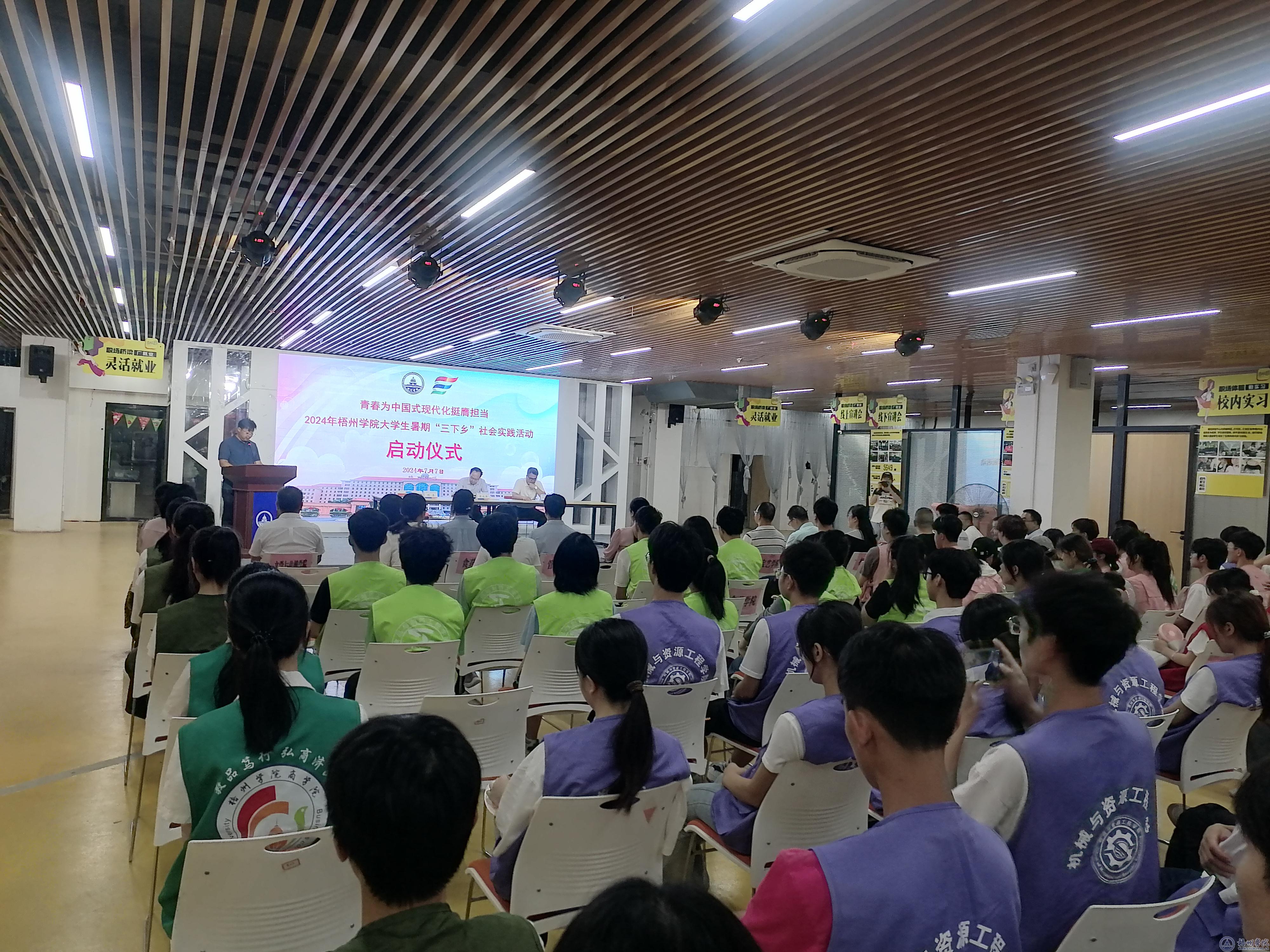 77日上午,学校在体育馆邑谷活动中心举行“青春为中国式现代化挺膺担当”2024大学生暑期“三下乡”社会实践活动启动仪式。学校党委副书记梁业华,学生工作部(处)、校团委负责人出席活动,各二级学院分管学生工作领导、团委负责人,暑期“三下乡”实践团全体师生参加活动。启动仪式由校团委负责同志主持。