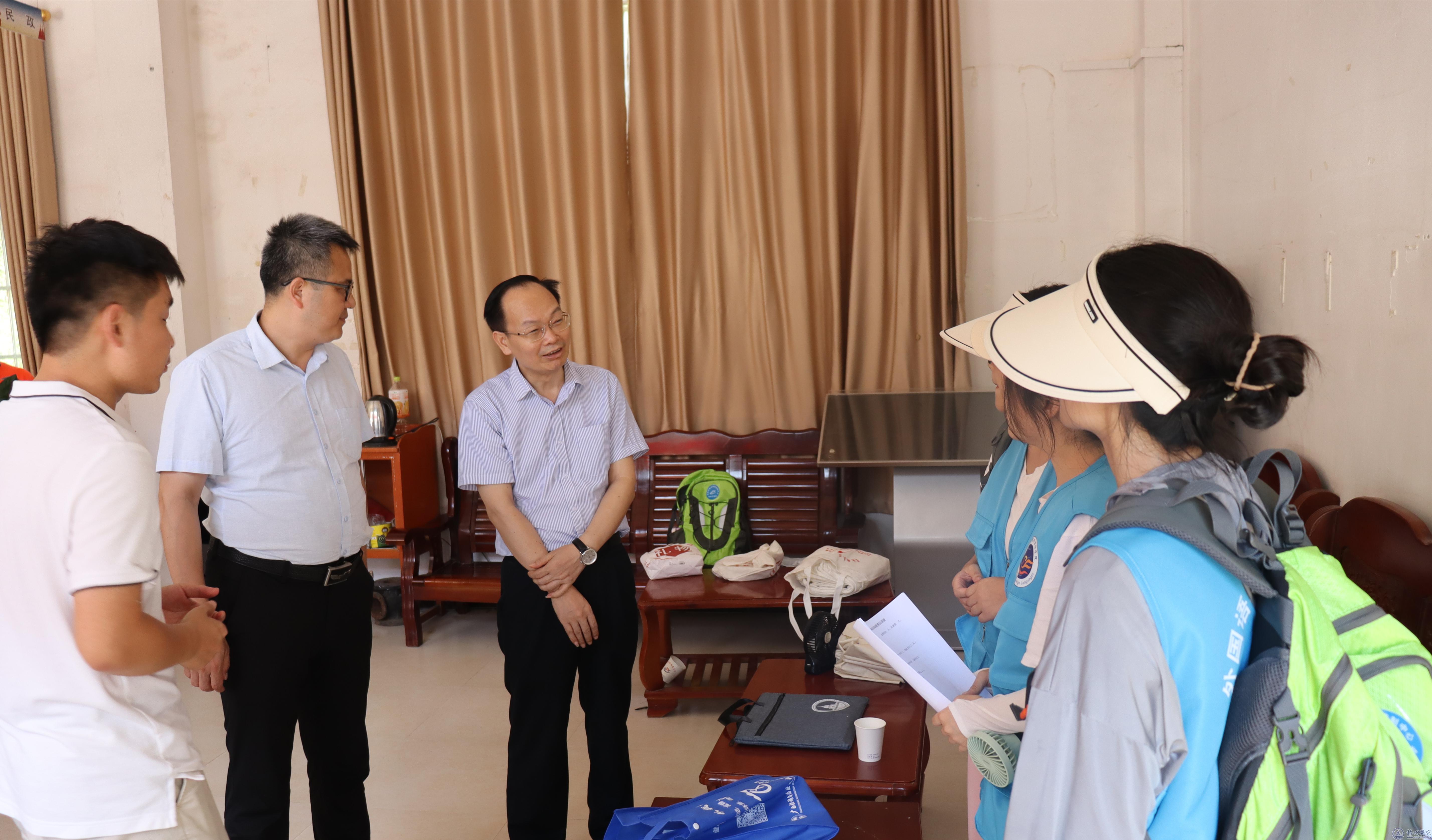 梁业华在蒙山县汉豪乡金垌村了解外国语学院实践团师生开展活动情况