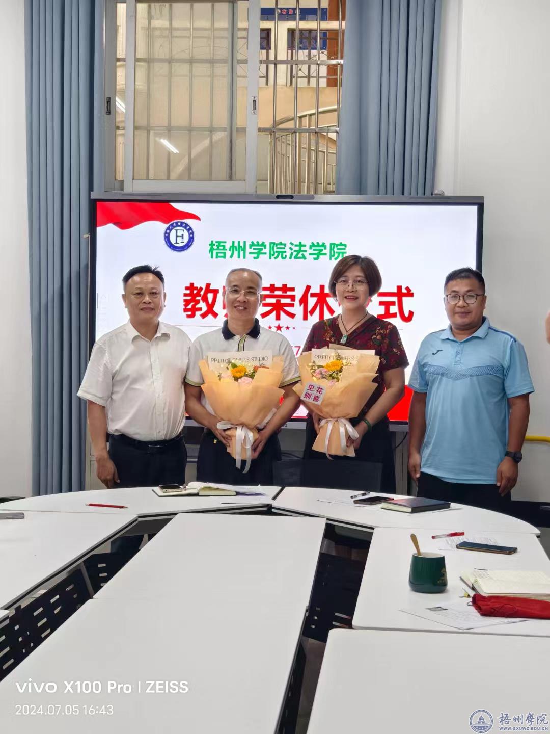 7月5日下午,法学院在党员活动中心举办了一场简朴而温馨的教师荣休仪式,向退休的黎祖立、黄旭标、王珍三位老师表达敬意、送上祝福。院长骆庆国主持仪式,法学院全体教职员工参加。
