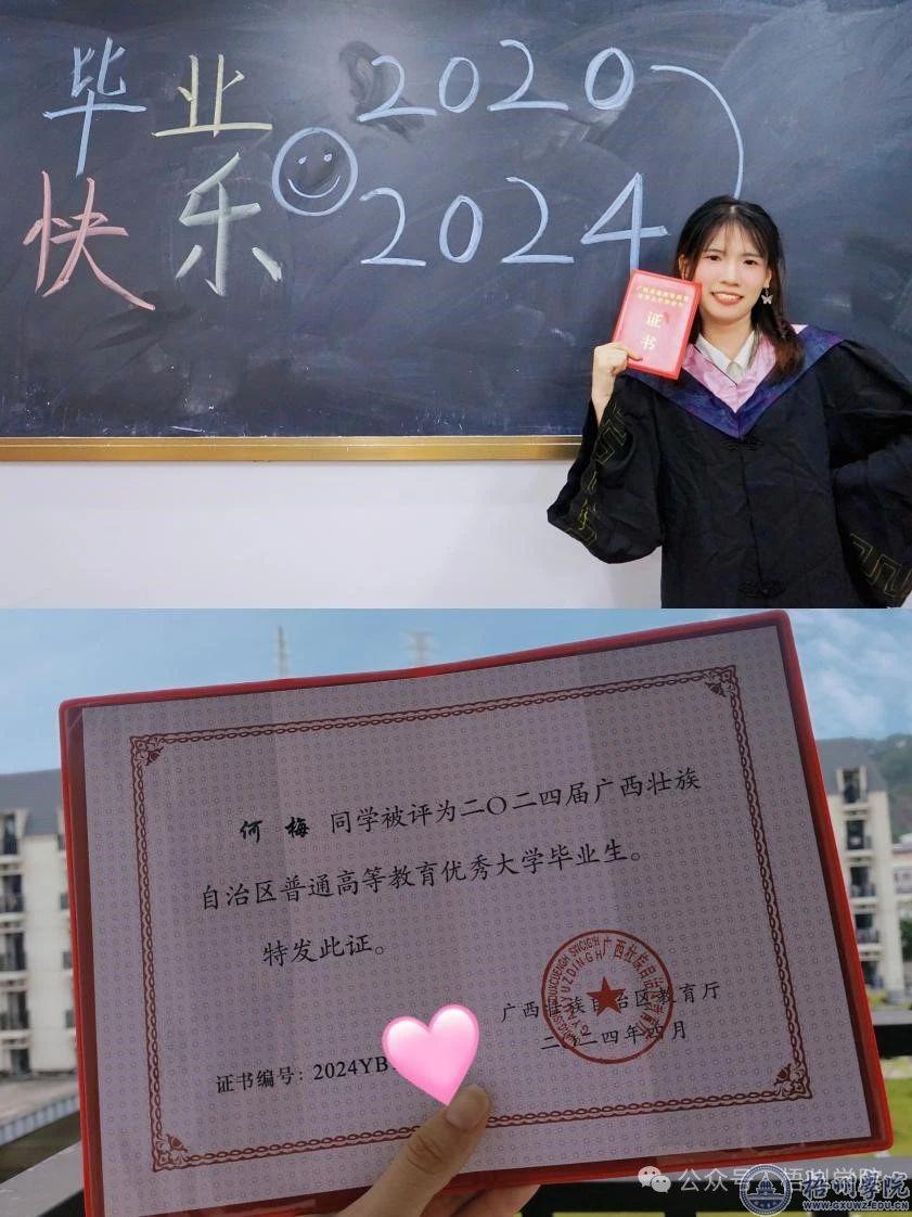 “追光的人,终会光芒万丈”是何梅的座右铭,这十个字始终成为何梅心中的一盏明灯,它照亮了何梅大学四年前行的道路,让她有着明确的目标,也激发了她的激情和毅力。同时,它也很好地诠释了何梅在大学四年间的努力以及即将走向的工作岗位。