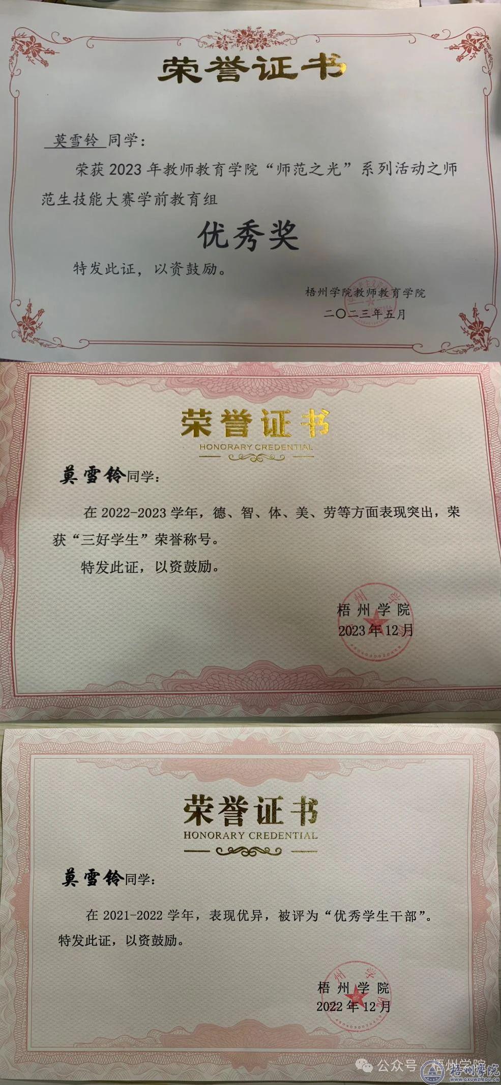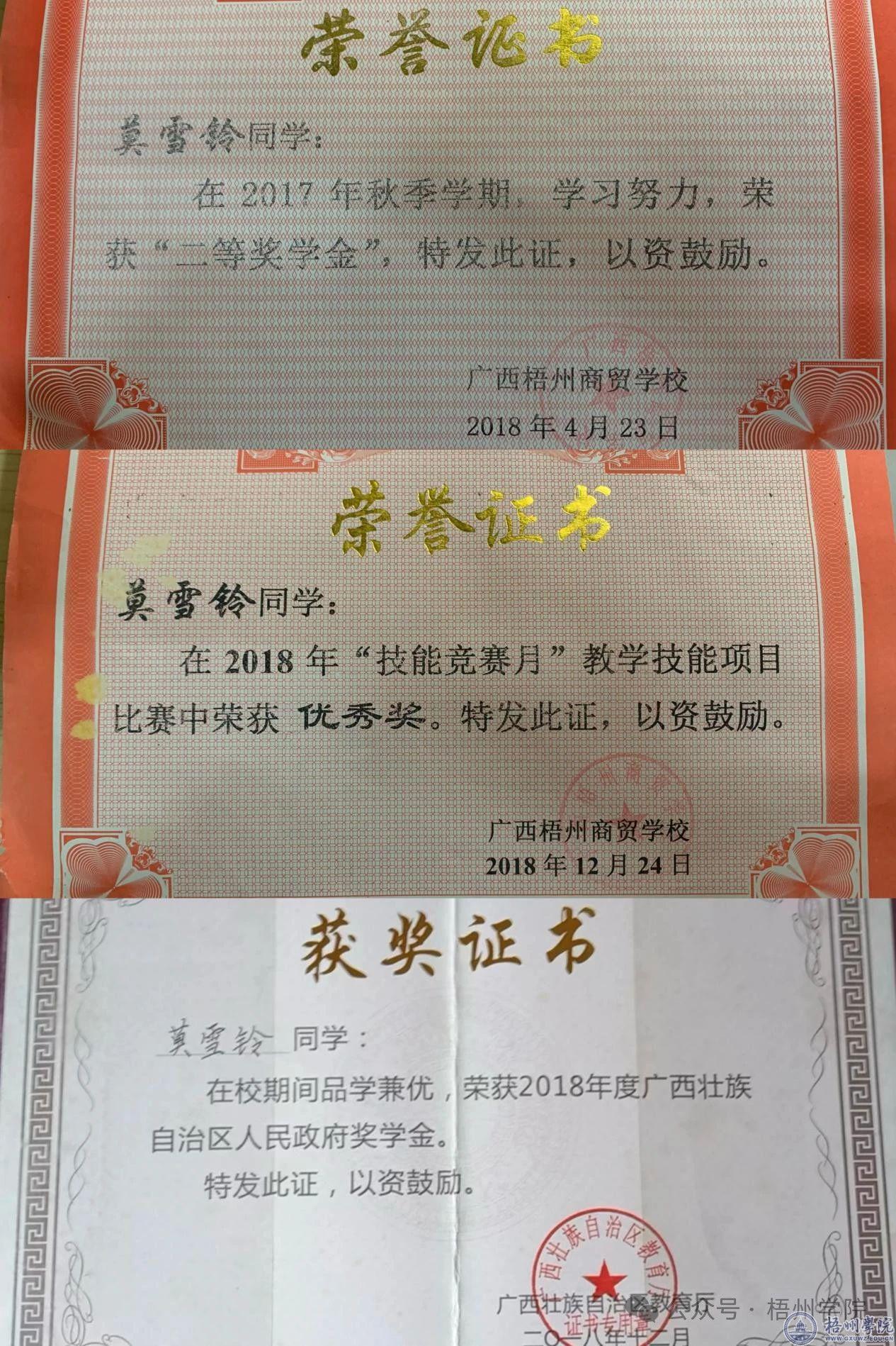 梧州学院莫雪铃名列其中