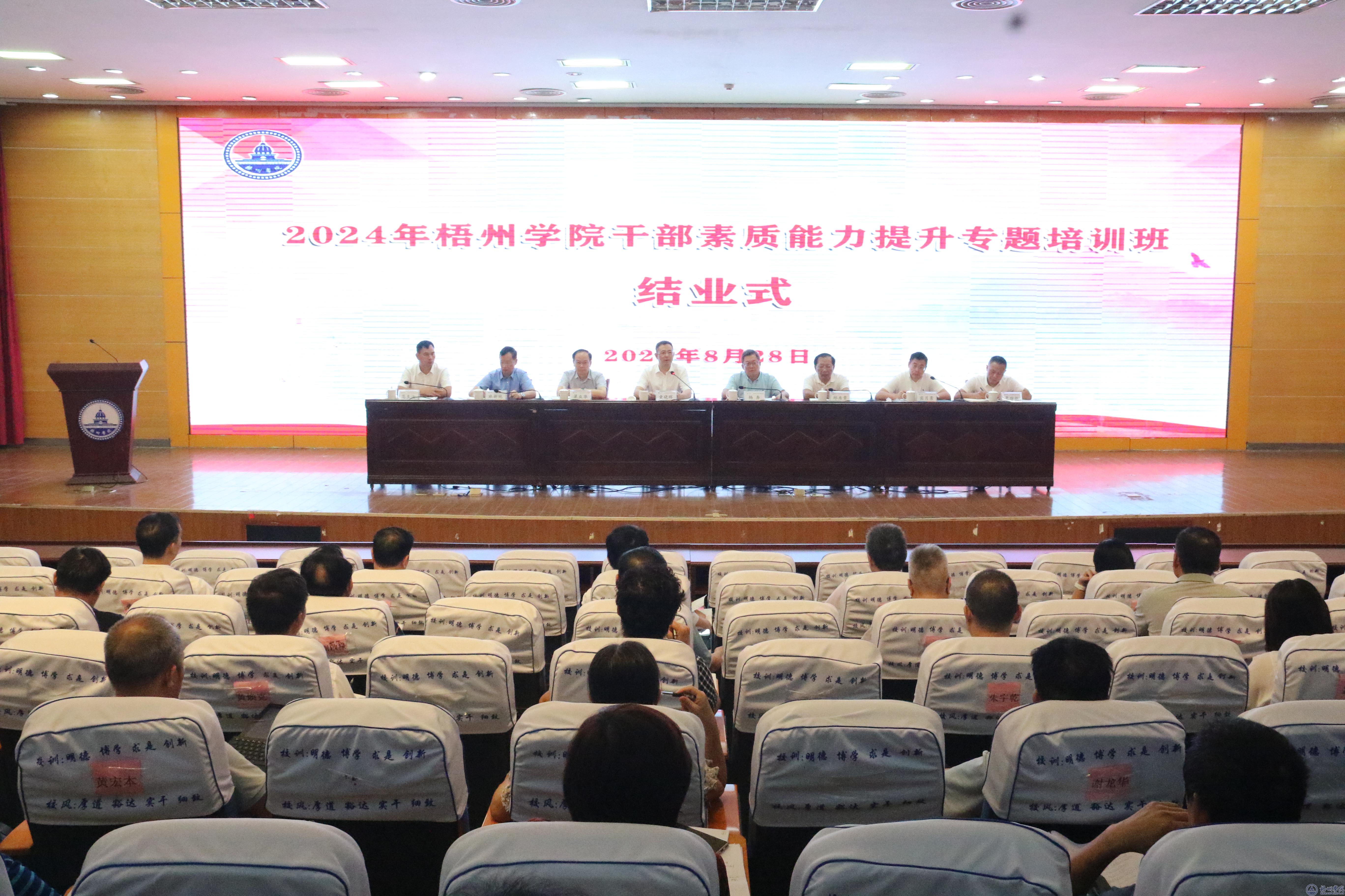 8月28日上午,举行了培训班结业式,总结培训成果。学校纪委书记宾月景主持结业式,全体培训班学员参加结业式。培训班6个学习小组组长依次汇报了本组学习成果。学校党委副书记梁业华,副校长邱房贵、麻新纯、范生汝、覃雄彪围绕分管工作进行了工作布置,提出了明确的工作目标和工作要求。