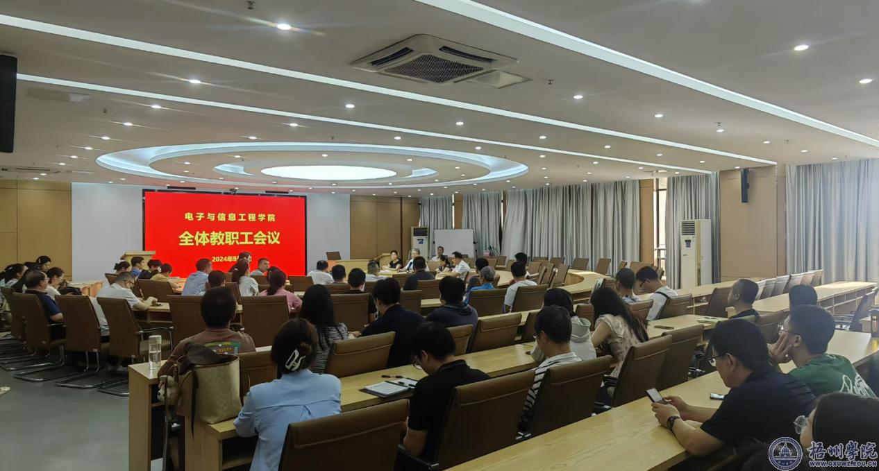 9月1日上午,电子与信息工程学院全体教职工在明科楼1108召开新学期工作布置会议。会议总结了暑假期间学院各项工作,并对本学期教学、学工等工作进行了安排部署。