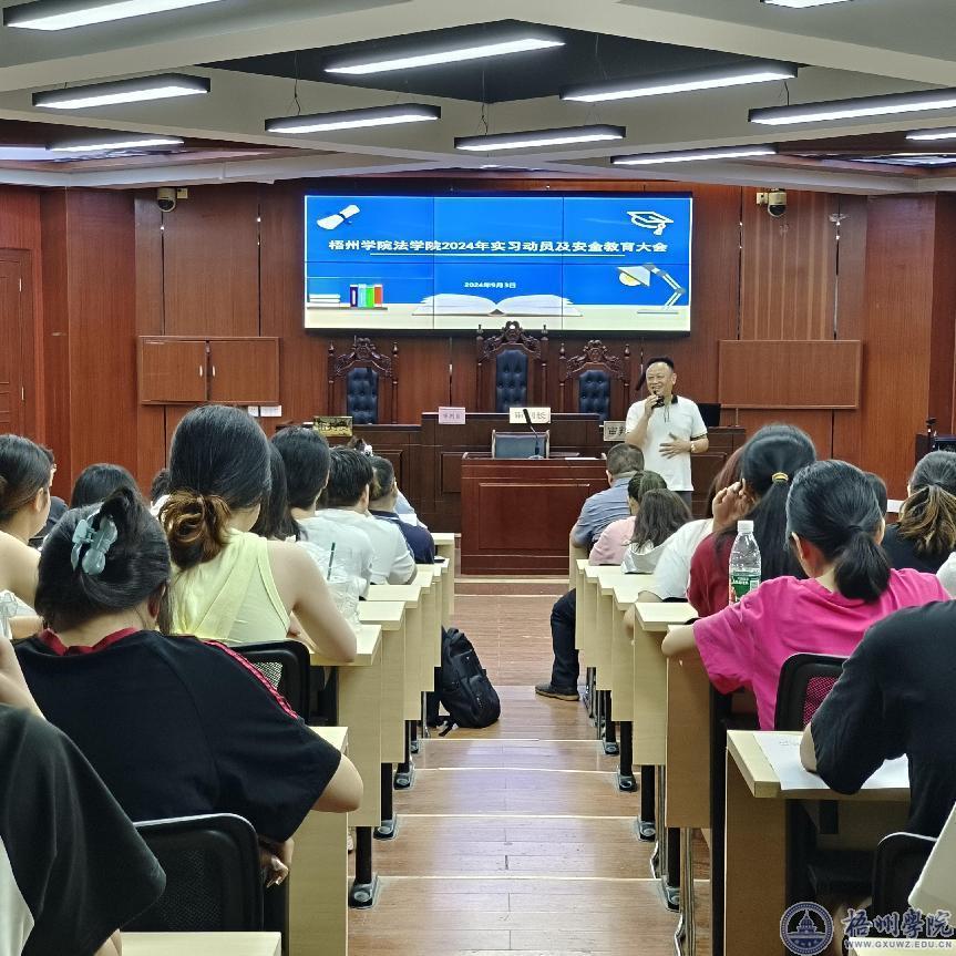 9月3日晚,法学院在模拟法庭召开了2024年实习动员及安全教育大会,会议由法学院教研室主任李永存主持,法学院院长骆庆国、副院长白续辉,各实习基地带队教师,全体22级法学3班、4班学生参加会议。