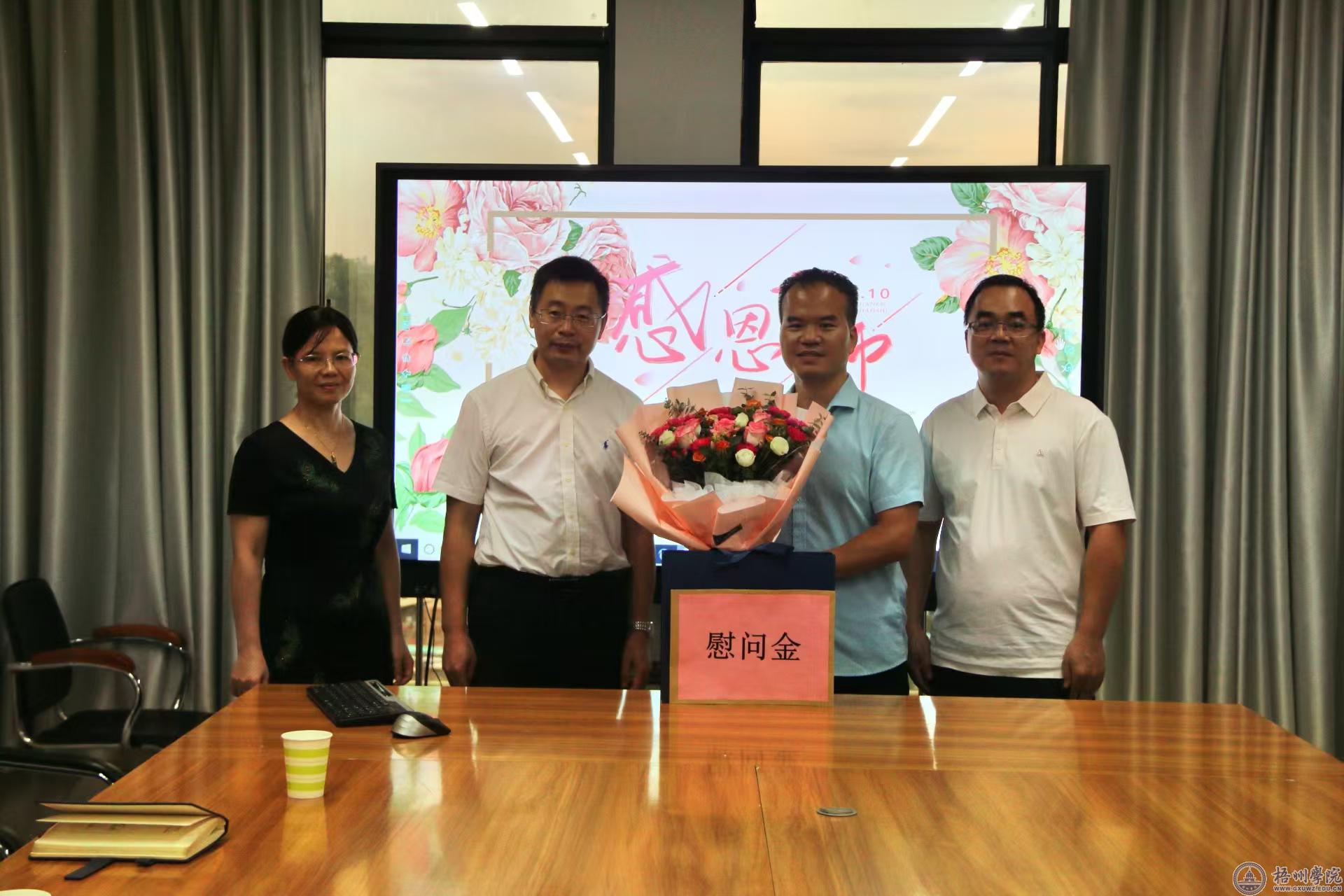 9月5日至9日,在第40个教师节来临之际,学校领导童晓晖、杨奔、梁业华、邱房贵、麻新纯、宾月景、范生汝、覃雄彪深入各教学单位,亲切慰问辛勤耕耘在教育一线的教师代表,向他们致以节日的祝福和诚挚的问候。