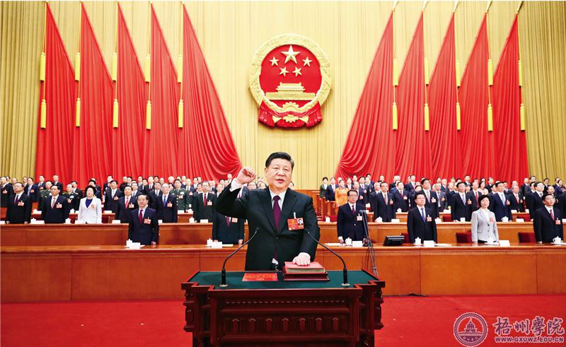2018年3月17日,十三届全国人大一次会议在北京人民大会堂举行第五次全体会议。习近平当选中华人民共和国主席、中华人民共和国中央军事委员会主席。这是习近平进行宪法宣誓。 新华社记者 鞠鹏/摄