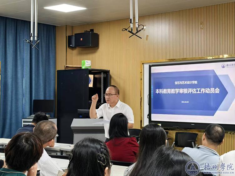 近日,宝石与艺术设计学院在学校明理楼M303召开本科教育教学审核评估工作动员会。学院领导班子成员及全体教师参会。