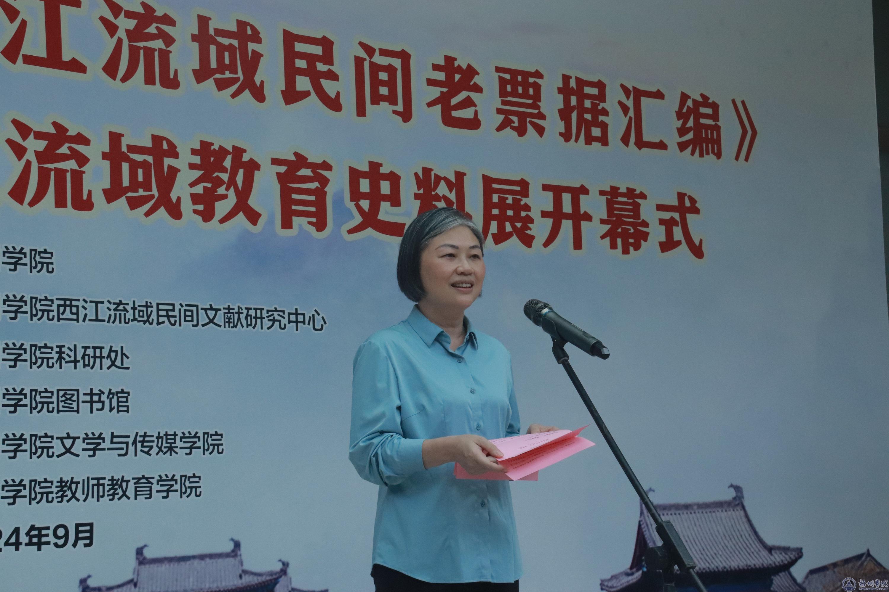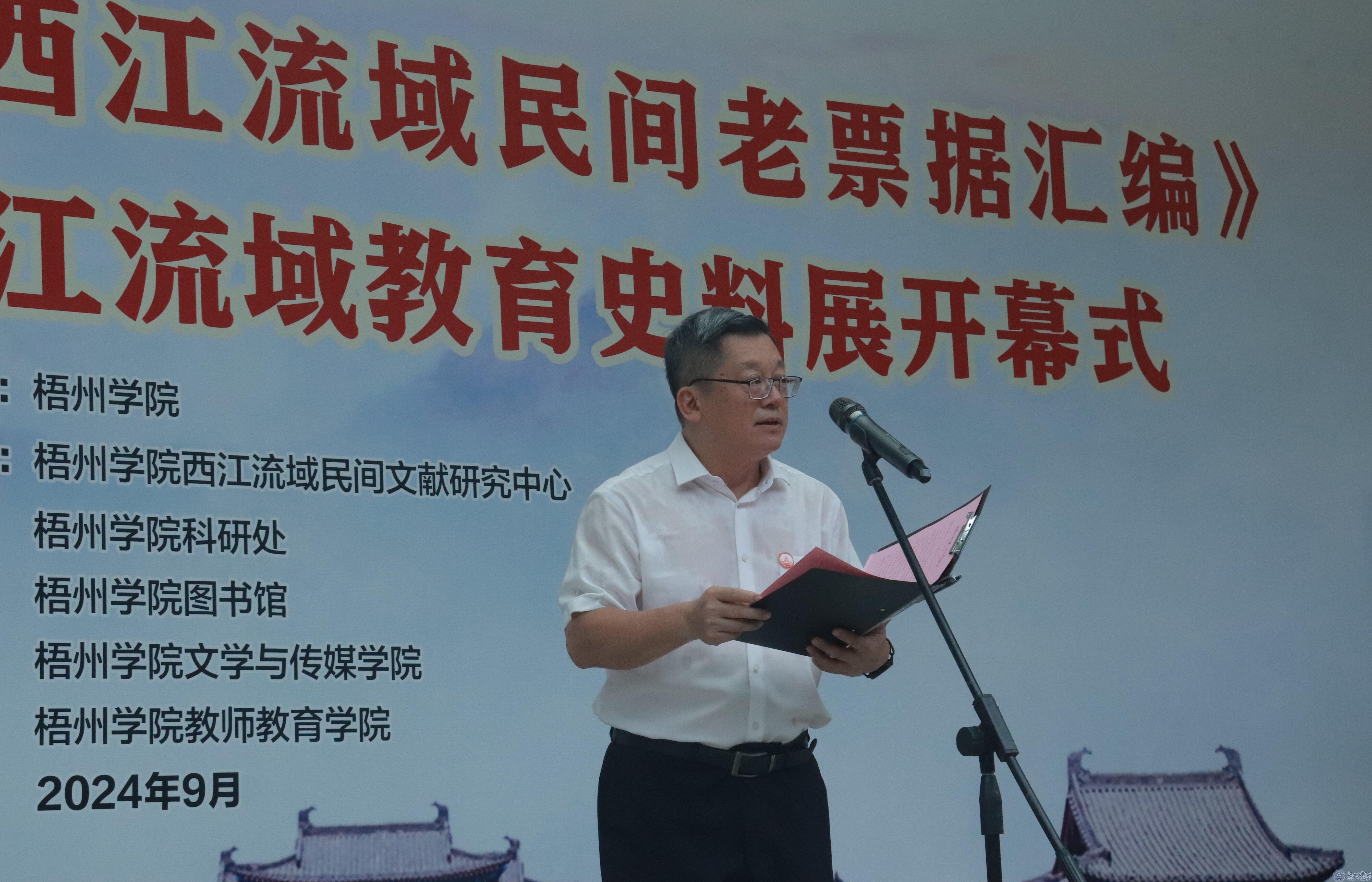 9月13日上午,《十八至二十世纪西江流域民间老票据汇编》新书发布会暨西江流域教育史料展开幕式在我校图书馆举行。梧州市副市长苏颖,校长杨奔、副校长麻新纯出席活动,应邀出席活动的有梧州市内相关单位代表及校内各部门代表。活动由图书馆馆长刘卫东主持。