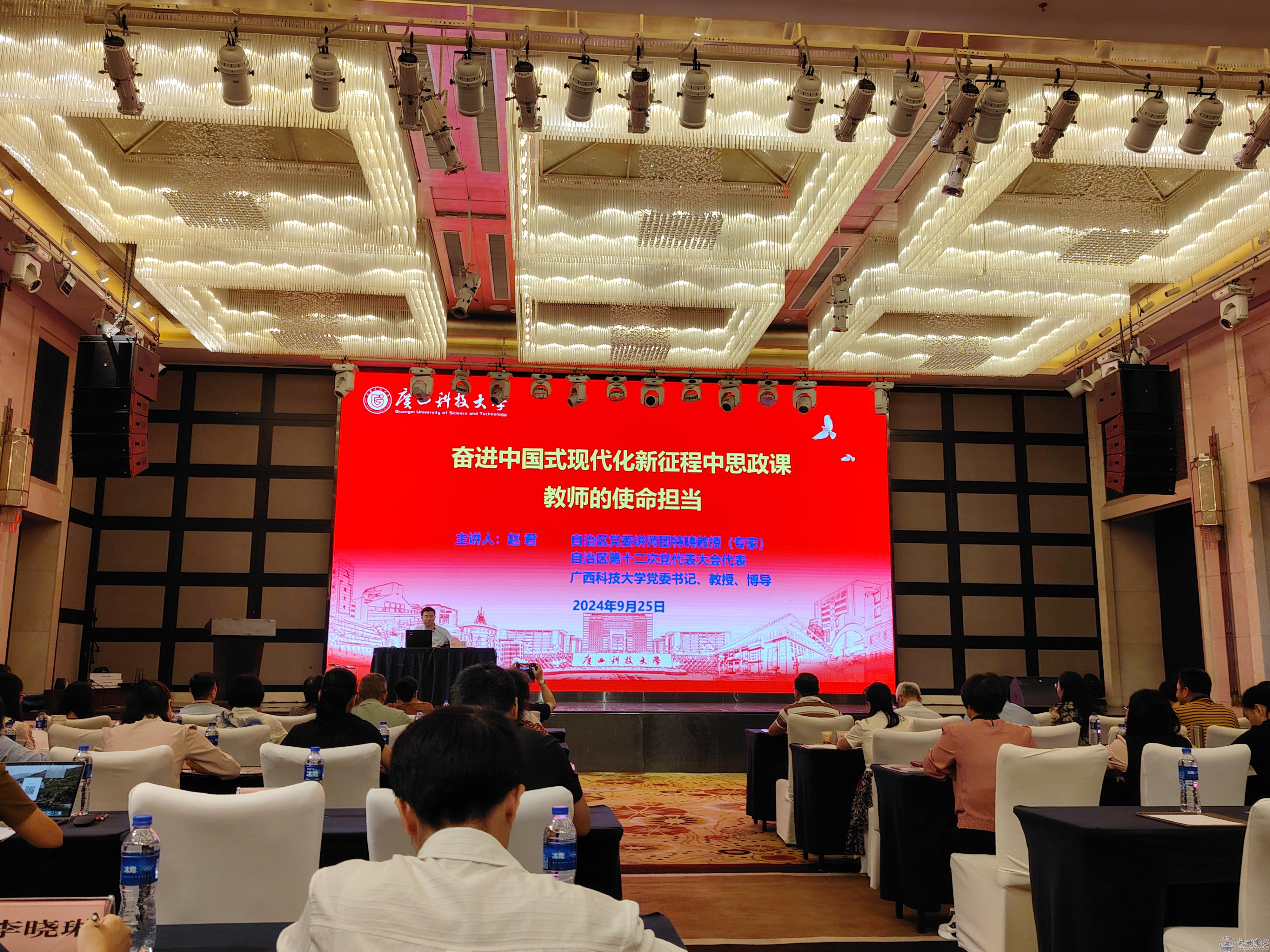9月24日至27日,2024年梧州市大中小学思政课一体化工作研讨会暨集体备课会在柳州召开,本次会议由梧州学院、梧州市委教育工委、梧州职业学院、梧州医学高等专科学校、梧州市教育局共同主办,广西科技大学马克思主义学院协办。我校党委常委、副校长覃雄彪,梧州市教育工作委员会书记、梧州市教育局局长覃映霞出席仪式并致辞,全市大中小学各学段的教师代表120多人参加。仪式由我校马克思主义学院副院长唐景成主持。