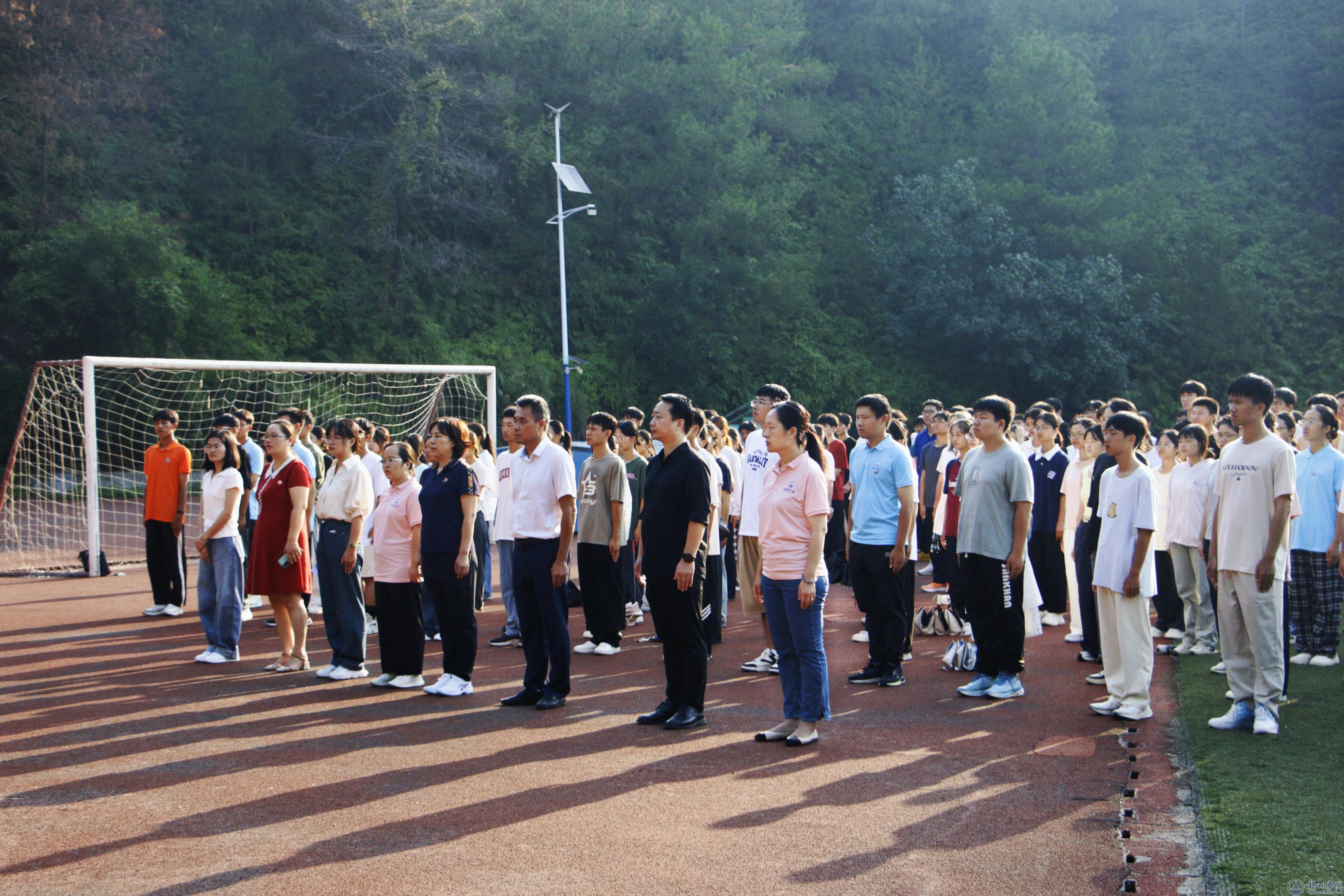 上午8时,师生整齐列队,国旗护卫队迈着矫健步伐护旗入场。伴随着雄壮的国歌,鲜艳的五星红旗冉冉升起,迎风飘扬。全体师生肃立、行注目礼并高唱国歌,深情表达对祖国的热爱与祝福。