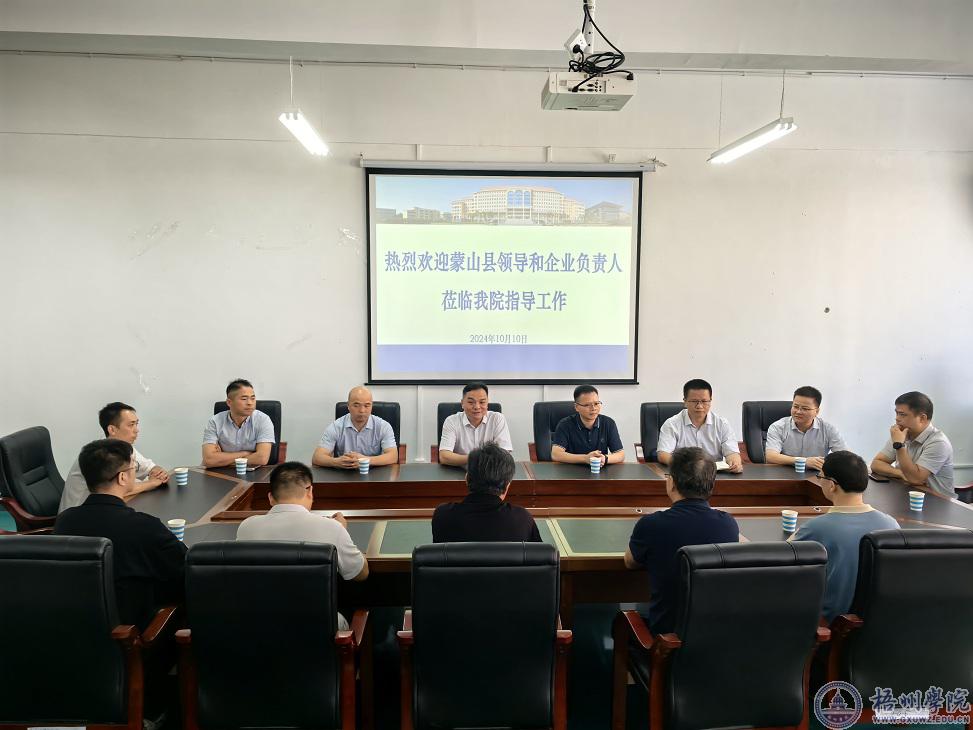 与会人员围绕乡村振兴、产业发展、人才培养及协同育人等方面进行交流探讨,并期望进一步开展多层次、多形式、多领域的合作,积极推动政校企三方资源的有机结合及优化配置,认真落实梧州学院与蒙山县人民政府签订的战略合作框架协议。