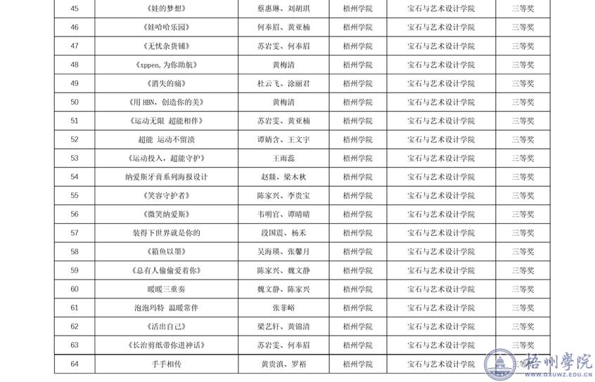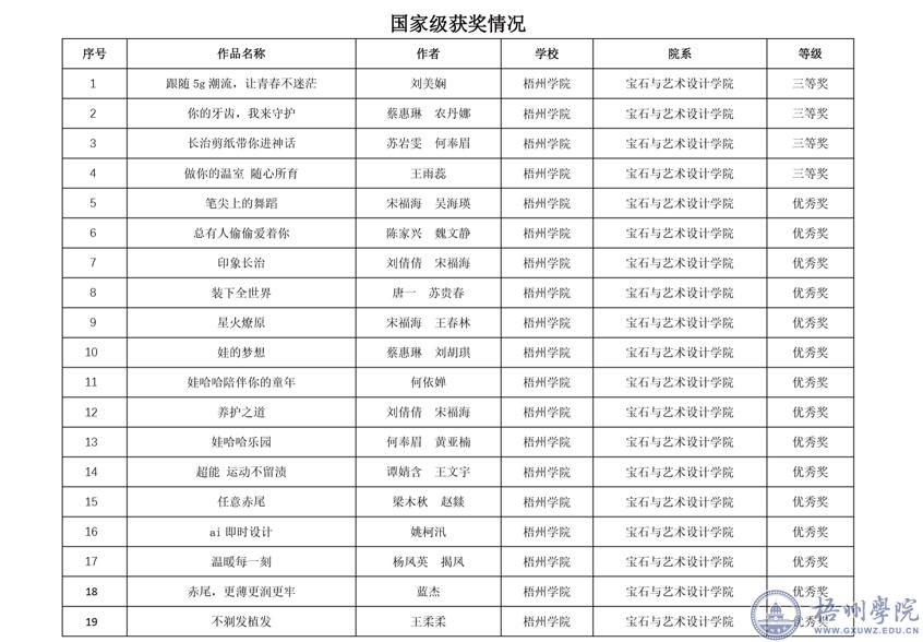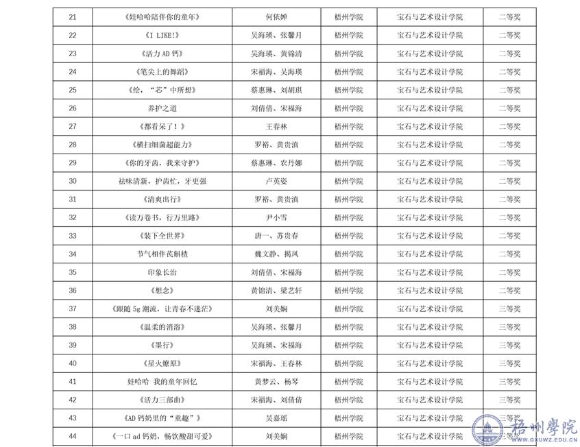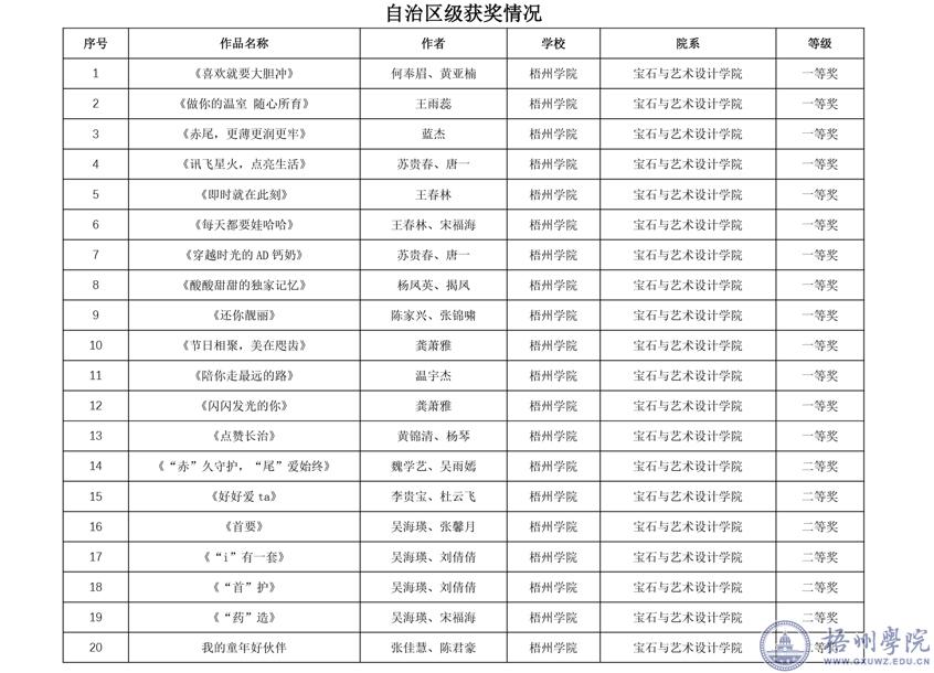 近期,宝石与艺术设计学院组织学生参加第16全国大学生广告艺术大赛,获得国家级三等奖4项,优秀奖15项,自治区级一等奖13项,二等奖23项,三等奖28项根据广西本科教育网显示,我校获奖积分在广西85所普通高等学校中排名第6,获评广西赛区优秀组织单位奖。