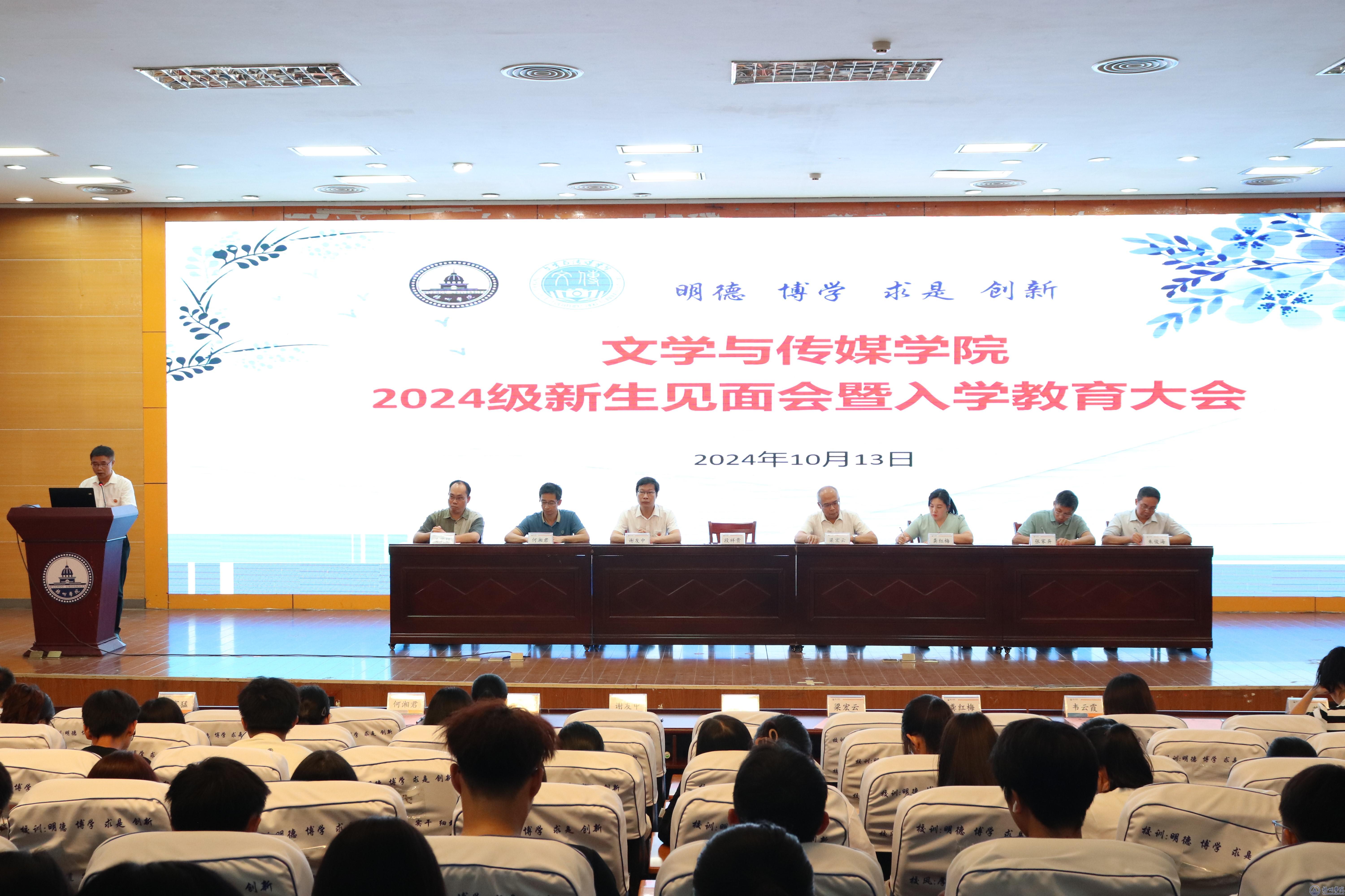10月13日,文学与传媒学院在明理楼一楼学术报告厅举办了2024级新生见面会暨入学教育大会。学院领导、科级干部、教研室主任、辅导员和班主任和2024级全体新生参加。