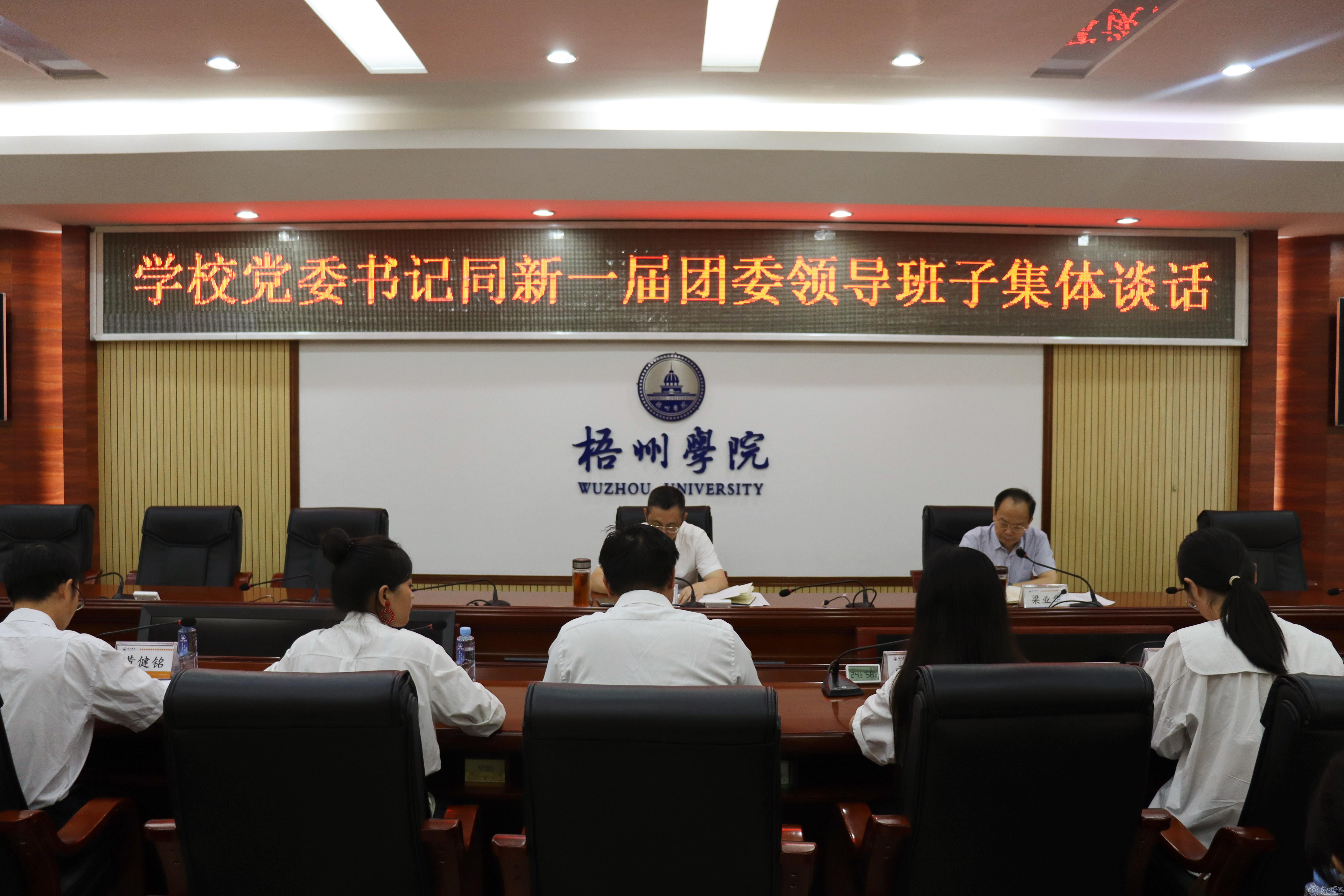 10月15日,校党委书记童晓晖在明理楼八楼第一会议室同新一届团委领导班子集体谈话。校党委副书记梁业华主持会议。