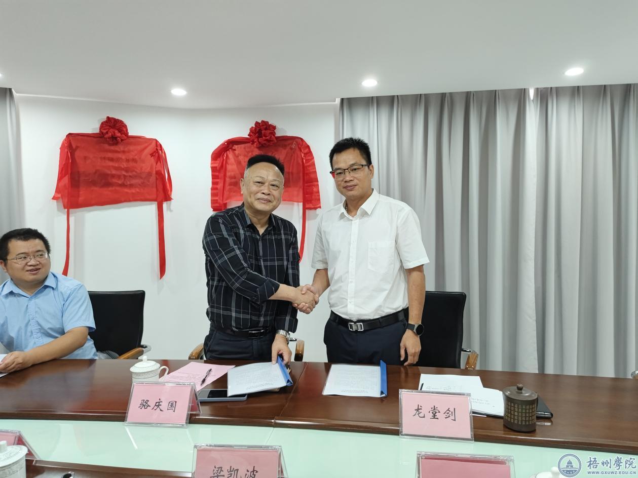 随后,在双方出席人员的共同见证下,骆庆国与龙堂剑签署了产教融合校地合作协议并举行了揭牌仪式。