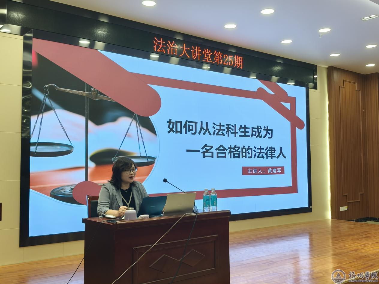 10月18日晚,法学院在科技楼101报告厅成功举办了法治大讲堂第25期讲座。广西同望(梧州)律师事务所主任黄建军主讲。讲座堂由教研室主任李永存博士主持。