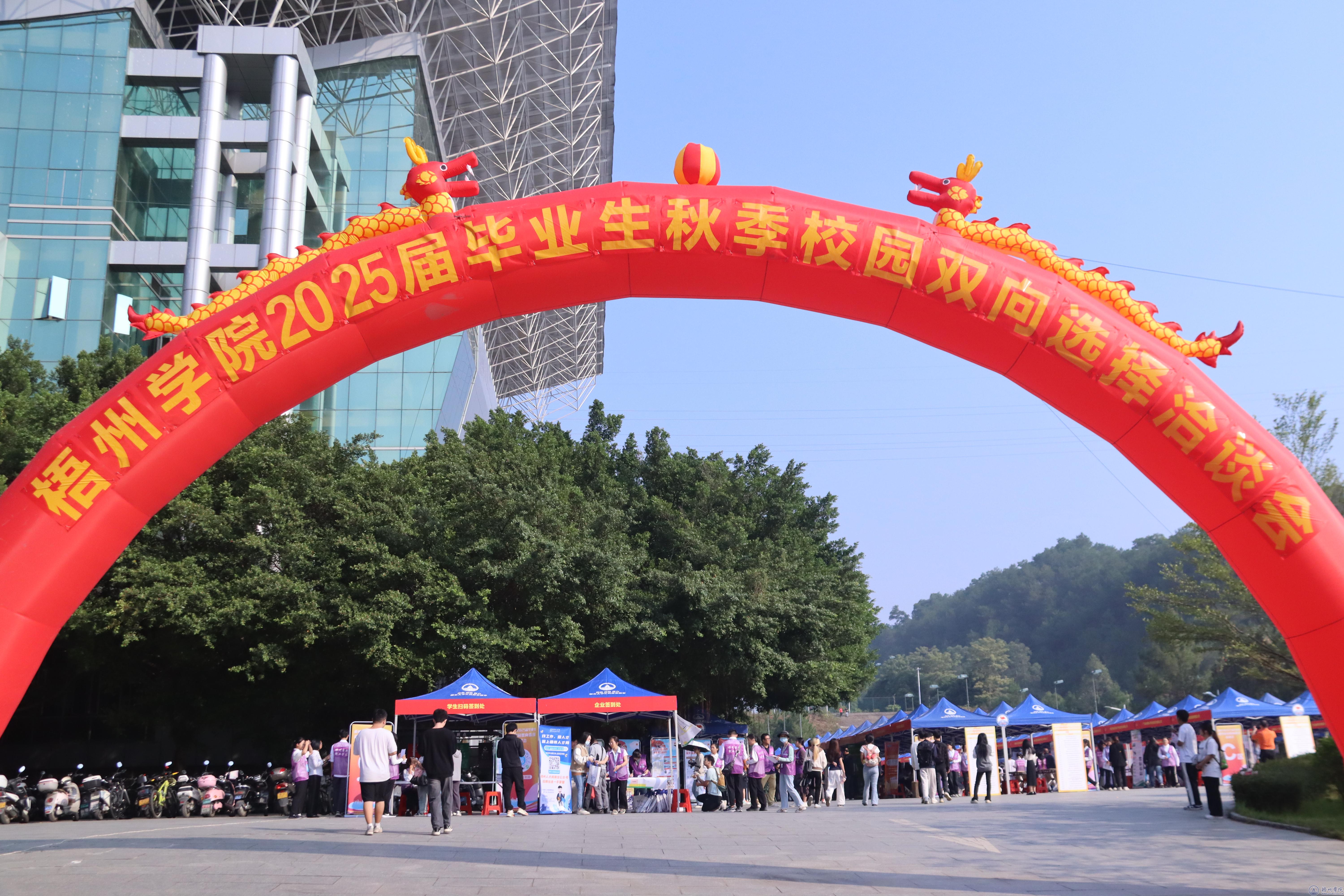 为深入贯彻落实党中央、国务院“稳就业”“保就业”的决策部署,助力2025届毕业生高质量充分就业,为用人单位和毕业生搭建供需平台。11月2日上午,学校在体育馆一层外举办2025届毕业生秋季校园大型双向选择洽谈会(以下简称“双选会”)。此次双选会由学校主办,梧州市人力资源社会保障局、学校筑梦职业发展工作室协办。