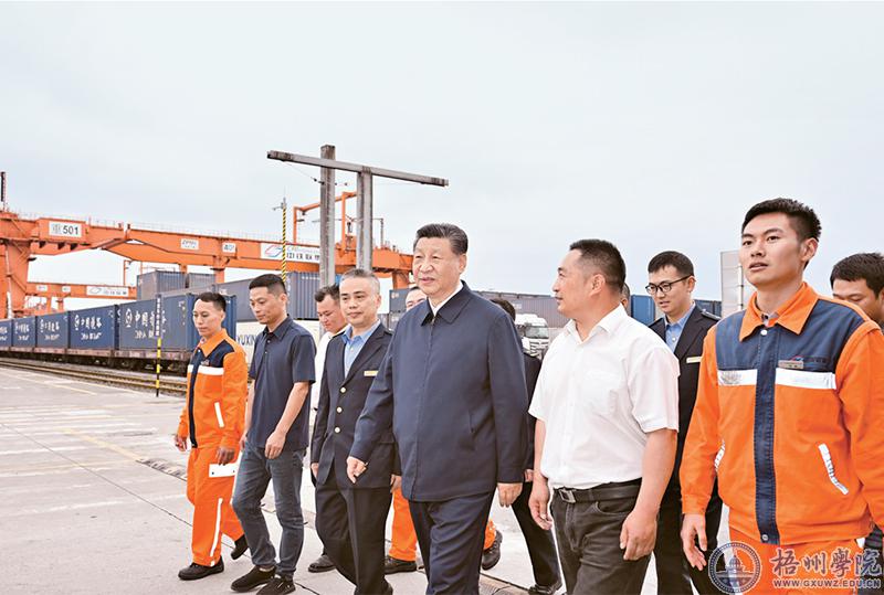 这是22日下午,习近平在重庆国际物流枢纽园区重庆铁路集装箱中心站,同货车司机、列车司机、装卸工人、场站管理人员等亲切交流。 新华社记者 岳月伟/摄