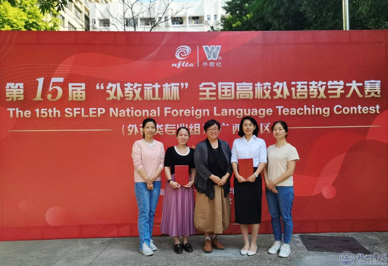 11月8日至10日,由上海外国语大学主办的第十五届“外教社杯”全国高校外语教学大赛广西赛区决赛在南宁师范大学举行。经过授课、说课、评委问答等环节的激烈竞争,外国语学院李翠萍老师及其团队成员陆璐老师、邝新娟老师获商务英语组一等奖,甘宁老师及其团队成员莫梅婷老师、李伟权老师获英语专业组二等奖。