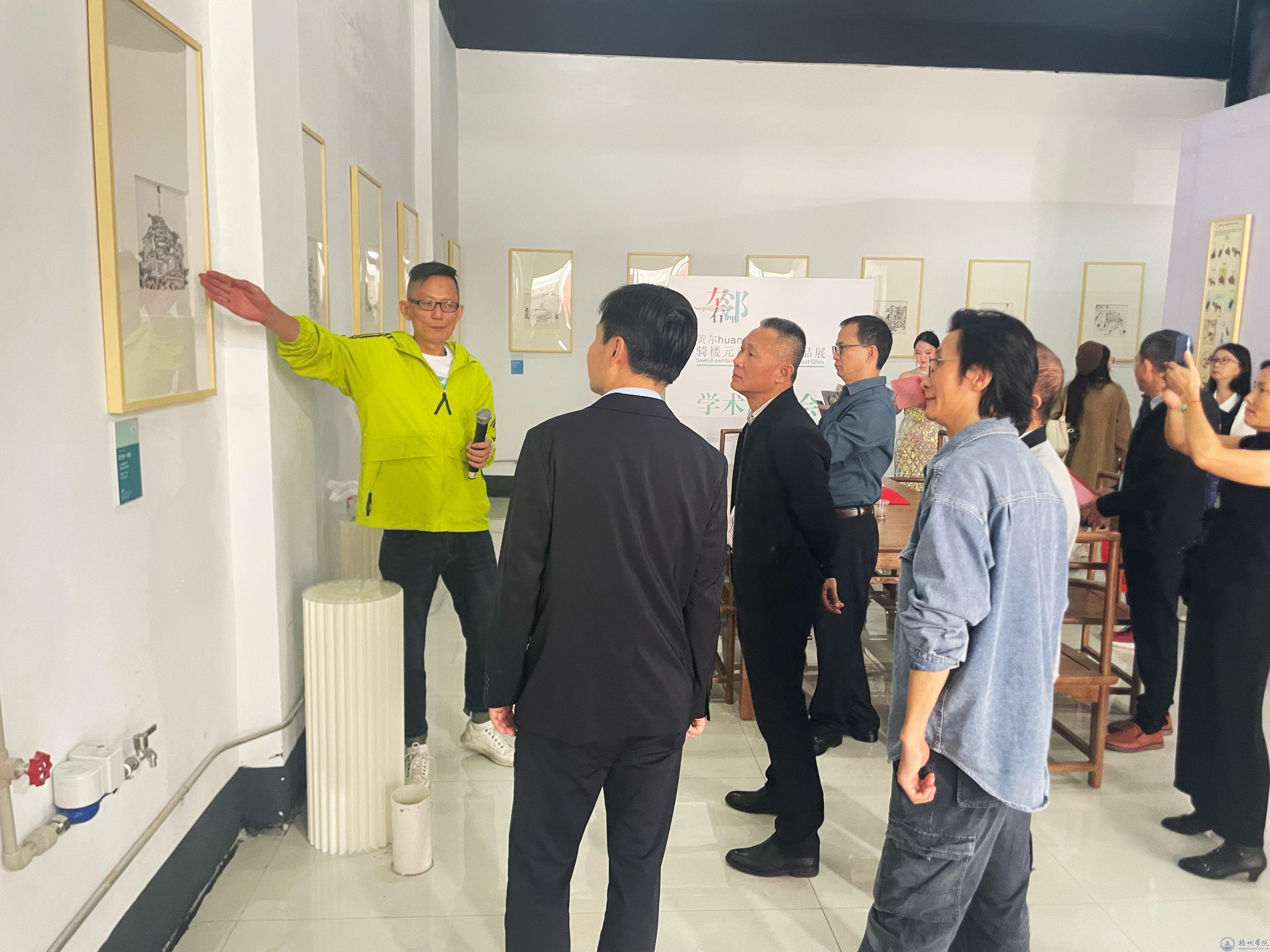 揭幕式上,潘彤、杨杰先后为本次展览致辞。潘彤指出,黄尔老师的作品皆围绕梧州市骑楼城元素创作,且在广西文旅大会上展出,对梧州历史文化及骑楼城宣传有着极佳的效果。杨杰指出,本次展览的作品进一步丰富了梧州市商贸文化、岭南文化的内涵,以独特的艺术视角展现了梧州文化的多元性与独特魅力,让市民和游客能从这些作品中领略梧州深厚的文化底蕴,为梧州文化艺术的发展注入了新的活力。