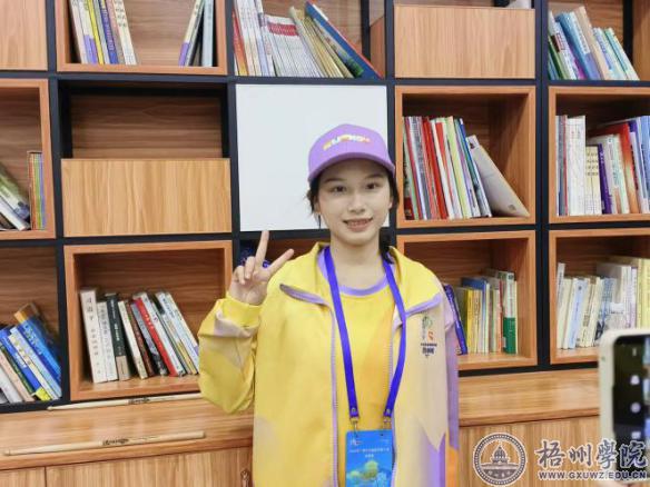 在这次文旅大会志愿者者活动当中,我主要负责在嘉宾出行的车辆上准备好随车物品,并在车辆返程后进行检查,做好补给。这是我第一次参加大型的志愿活动,在出发前,我还有点担心,害怕在工作中会有做得不够好的地方,但在工作现场会有学校的老师以及其他志愿者们一起协作,这让我那点担心消失无踪了。我很高兴能够参加这次志愿者活动,为广西文旅大会在梧州顺利举办贡献微薄之力。