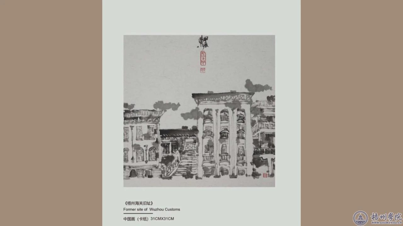 这些充满着艺术气息,在水墨中浸染的画作就是刚刚开幕的骑楼元素中国画小品展的精美展品,它们的作者就是我市的本土艺术工作者——黄尔。这次的画展,取名的主题也很特别,叫“左邻右里”,从名字当中体现出作者想要表现的骑楼老故事和本土人文情怀。说到这次创作,作者黄尔表示,在梧州骑楼城修缮之初他就萌生了要创作骑楼题材的想法,所以在为期两个多月的创作当中,他走遍了梧州骑楼的大街小巷,临摹写生了各种代表性建筑,创作出了这个主题系列的文艺作品。