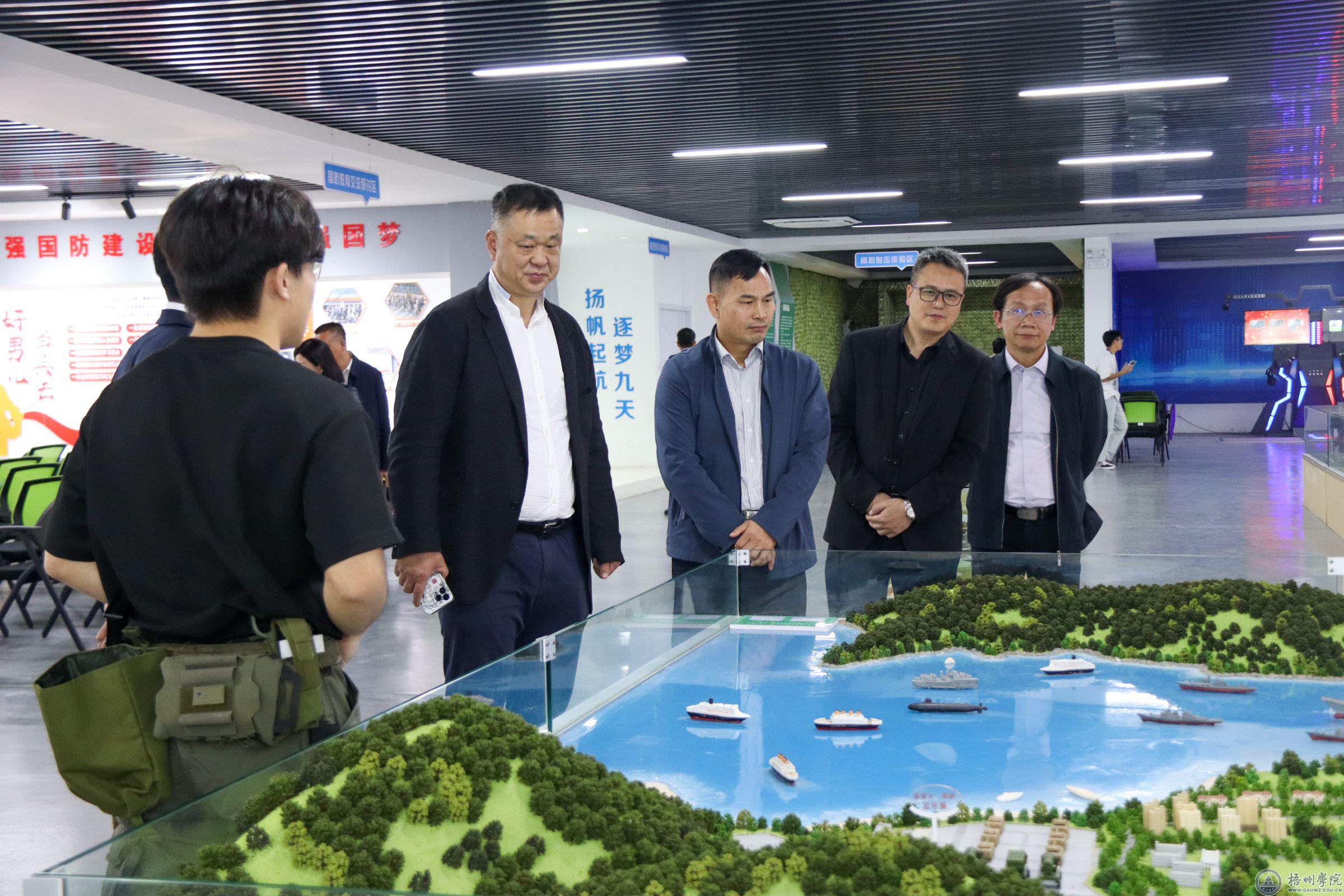 座谈会结束后,肖开宁一行人在范生汝的陪同下先后参观明科楼一楼监控室、国防教育展厅、心理健康教育中心、北片区学生宿舍、北区食堂、西江商贸文化博物馆、宝石文化博物馆、学生一站式服务点等场所。