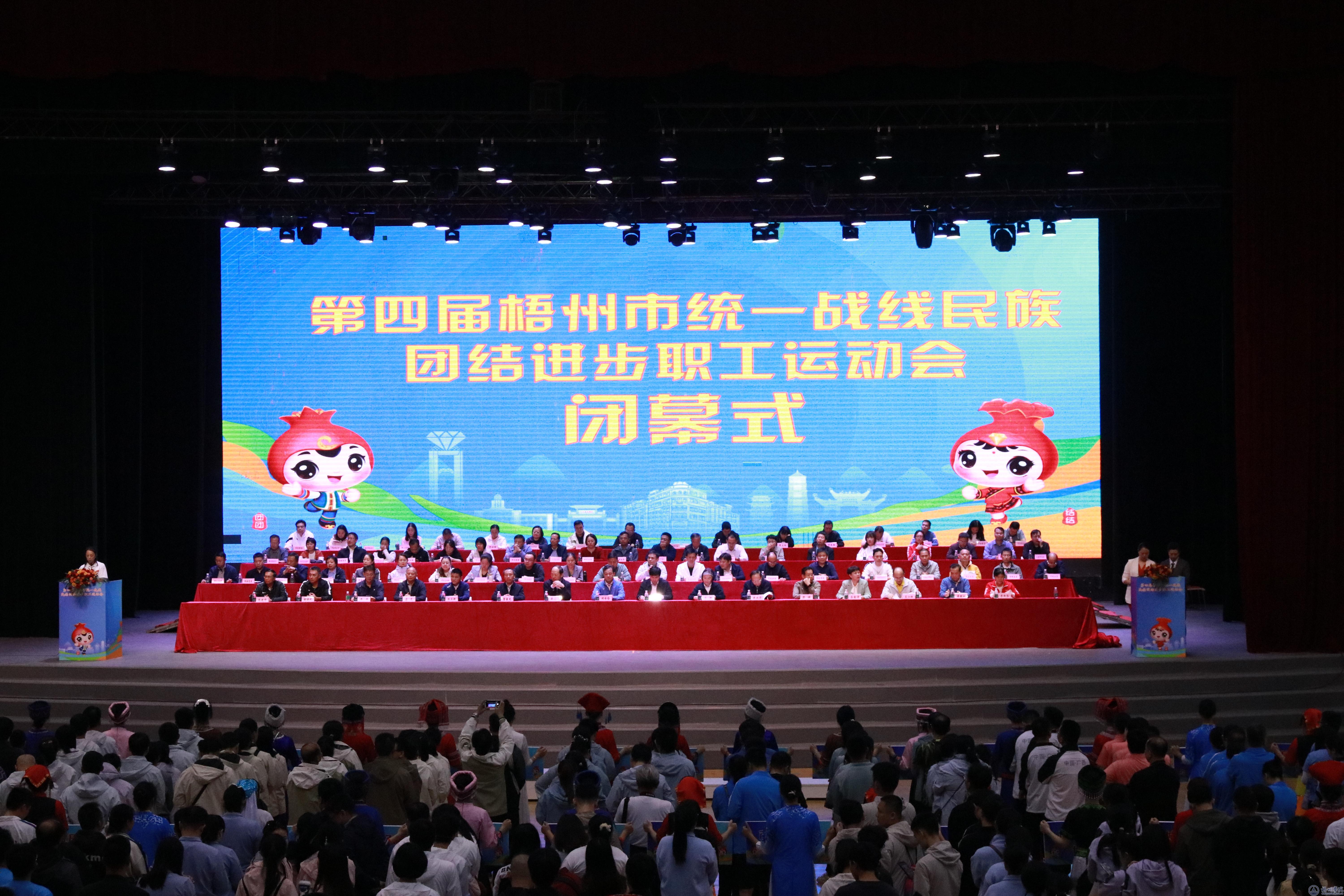 11月24日下午,梧州市统一战线民族团结进步职工运动会闭幕式在我校体育馆三楼举行。梧州市委常委、副市长赵增山为闭幕式致辞并宣布第四届梧州市统一战线民族团结进步职工运动会闭幕。