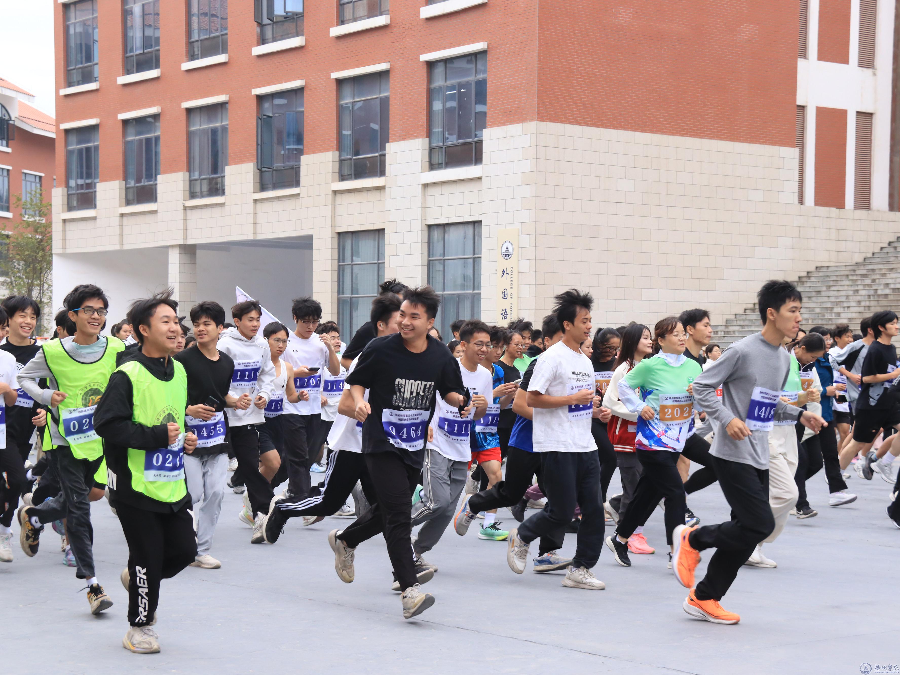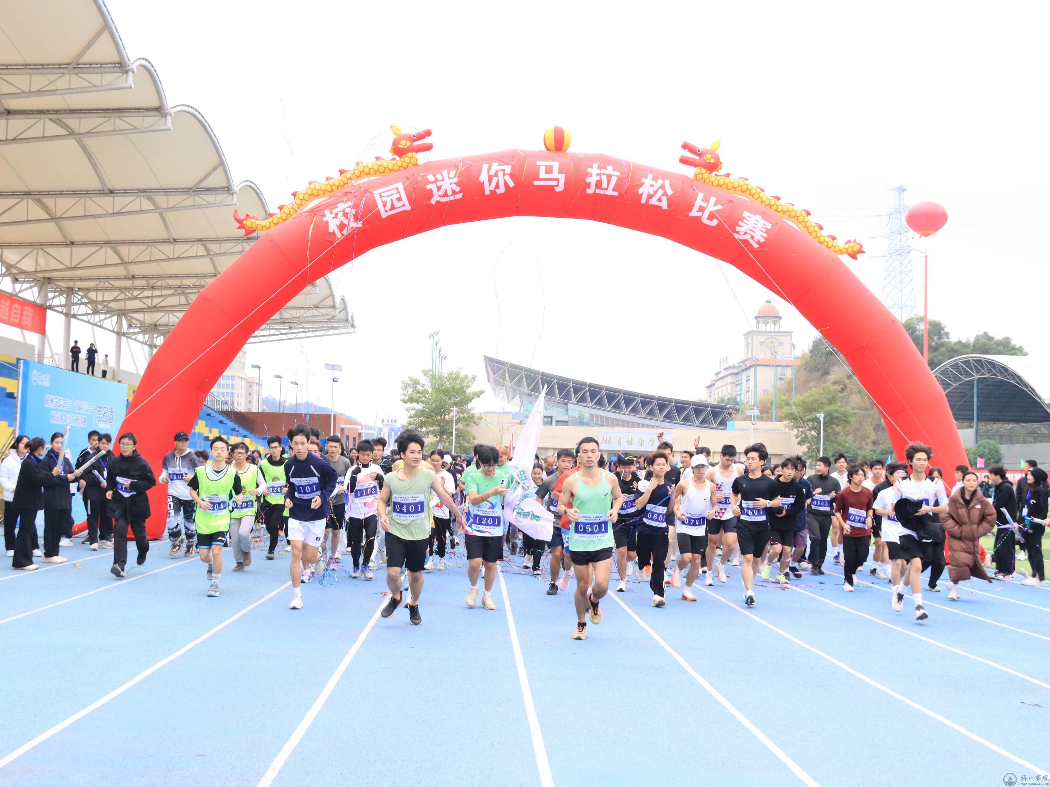 为促进我校师生身体健康,培养学生的毅力、坚持精神和竞争意识,丰富校园文化生活, 11月27日上午,我校举办第三十五届运动会校园迷你马拉松比赛。党委副书记梁业华、副校长覃雄彪出席活动,并为本次活动鸣枪。校长办公室、学生工作部(处)、教务处、财务处、审计处、国有资产管理处、后勤基建处、保卫处、校工会、校团委以及各二级学院的相关负责人参加活动。