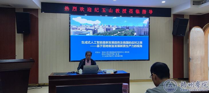 11月27日下午,吉林大学中国国有经济研究中心研究员、吉林大学经济学院纪玉山教授应邀到我校开展学术交流。纪玉山教授在明理楼七楼视频会议室作题为“生成式人工智能最新发展趋势及我国的应对之策——基于因地制宜发展新质生产力的视角”的专题报告。报告会由经济学院副院长梁文光主持,经济学院全体教师、数字经济专业学生代表参加交流。