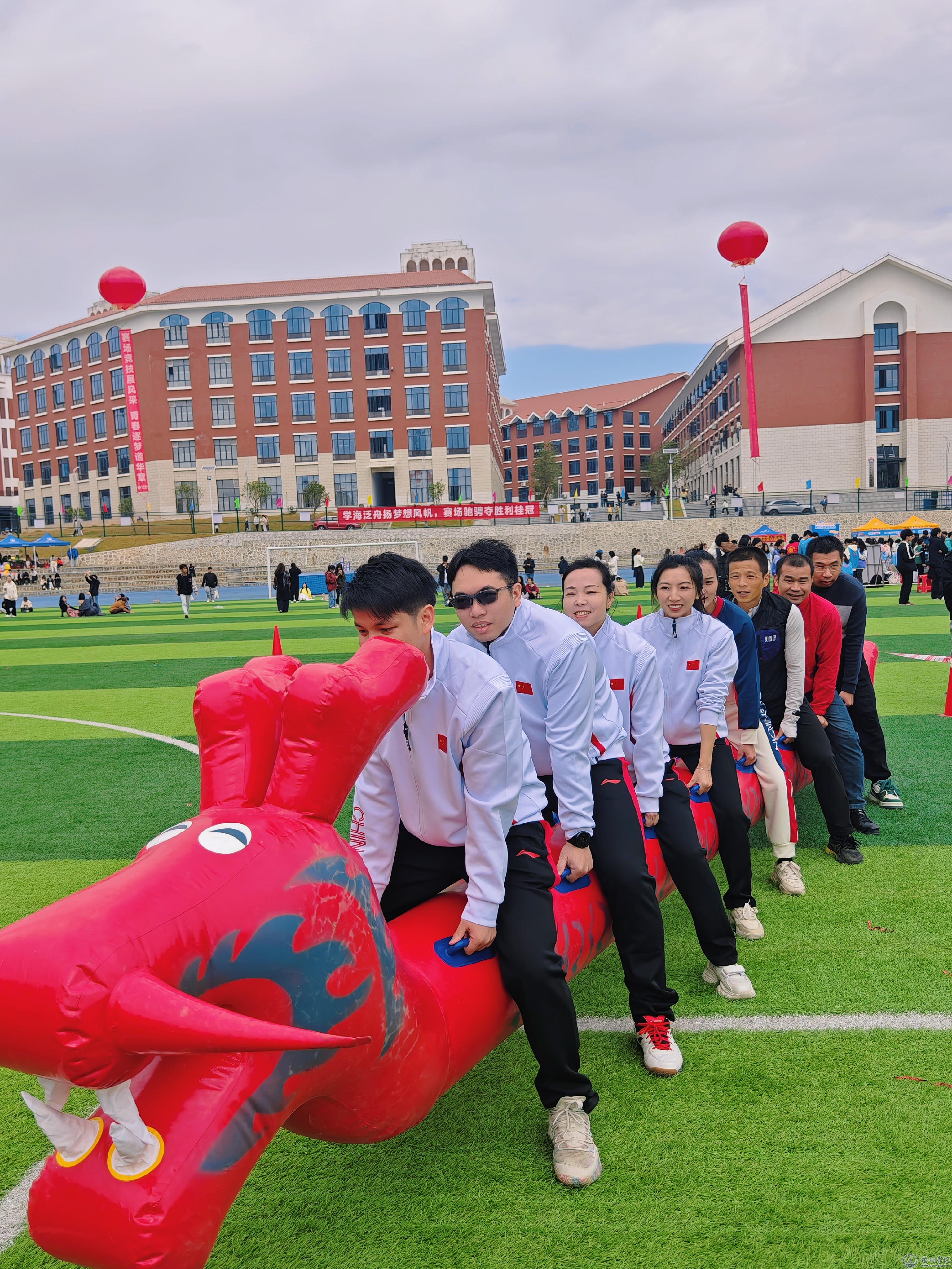 本届趣味运动赛设有齐心协力、趣味夹球、龙舟竞速、抛绣球四个项目,赛场上尽显协作与竞争精神,参赛者们精神抖擞,奋勇争先,展现我校教职工青春风采,既显现个人实力,更彰显集体力量。场外观众欢呼声此起彼伏,现场竞赛气氛热烈激昂。