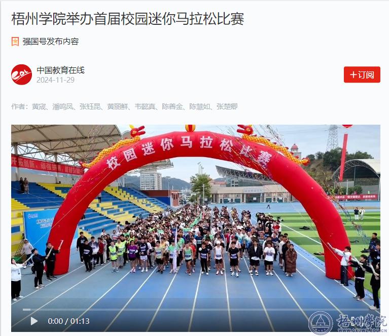 覃雄彪指出,此次校园迷你马拉松比赛的举办,是梧州学院深入践行健康教育理念,积极落实全民健身、全民健康战略,推动体育文化相融合的一次重要实践,也是梧州学院校园文化建设的一项重要成果。他提倡,运动员要秉持友谊第一、比赛第二的精神,赛出风采、赛出水平;用力量和积极演绎青春与精彩,用奔跑和速度展现开放与活力;未来,致力将梧州学院迷你马拉松比赛打造成特色鲜明、形式新颖的校园品牌赛事。