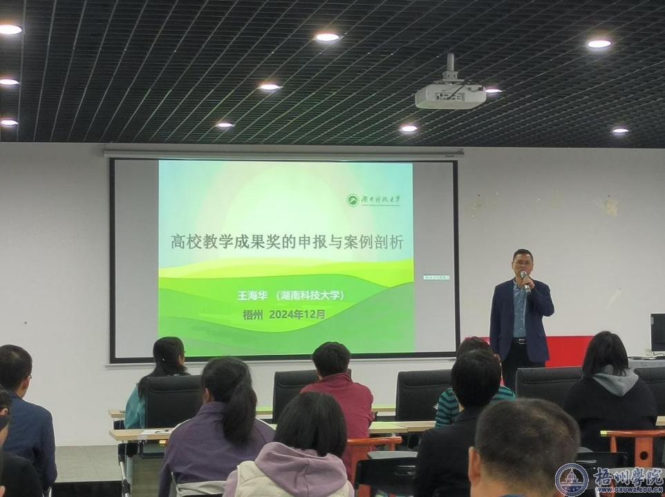 12月9日下午,湖南科技大学博士生导师、湖南省普通高校学科带头人王海华教授应邀到食品与制药工程学院开展《教学成果奖的申报与案例剖析》专题讲座,食品与制药工程学院江成英院长主持,学院全体教师参加。