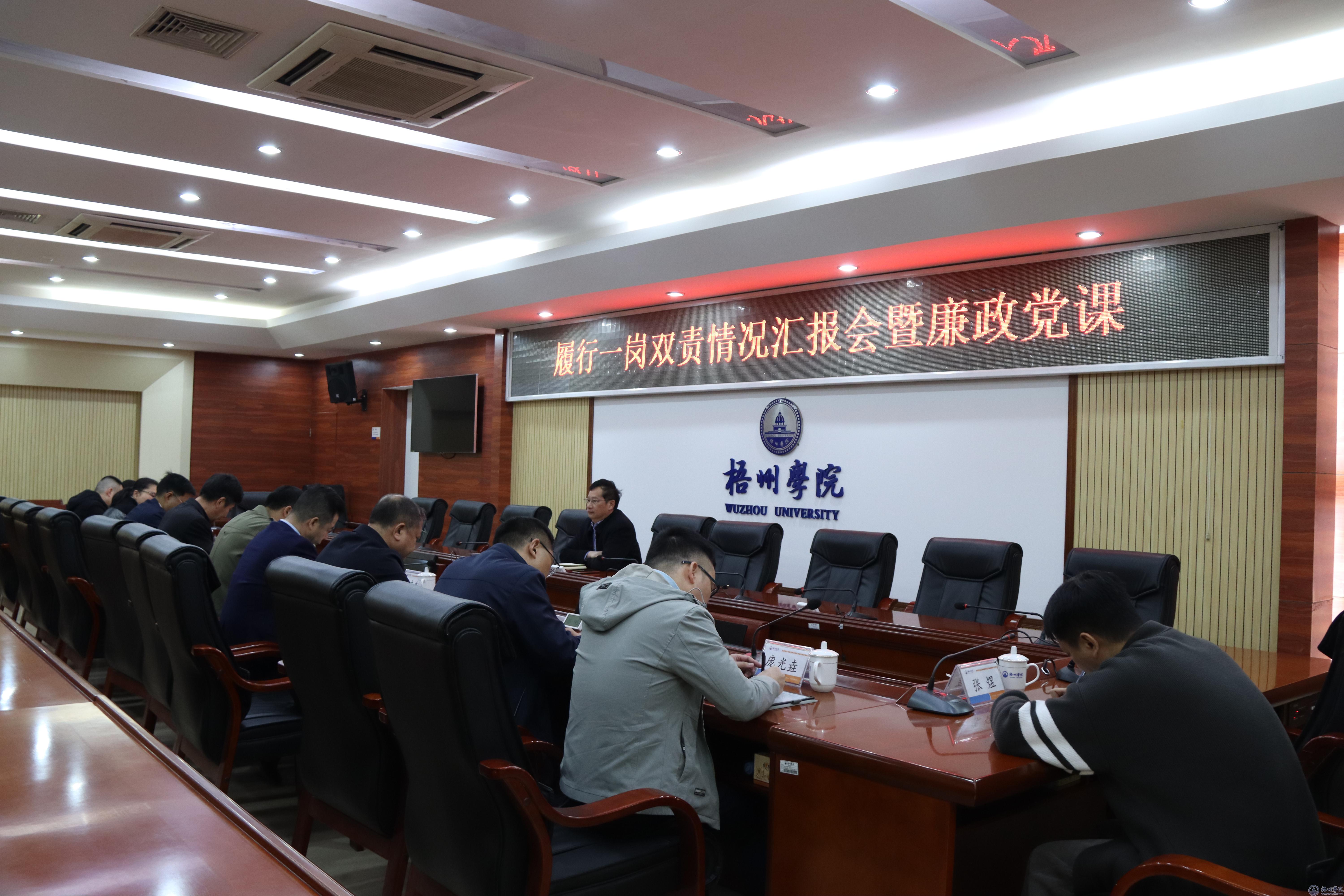 12月9日上午,学校党委常委、副校长麻新纯主持召开履行一岗双责情况汇报会暨廉政党课,人事处、发展规划处、科研处、学报编辑部等部门负责人参会。会议听取了各部门履行一岗双责工作汇报。