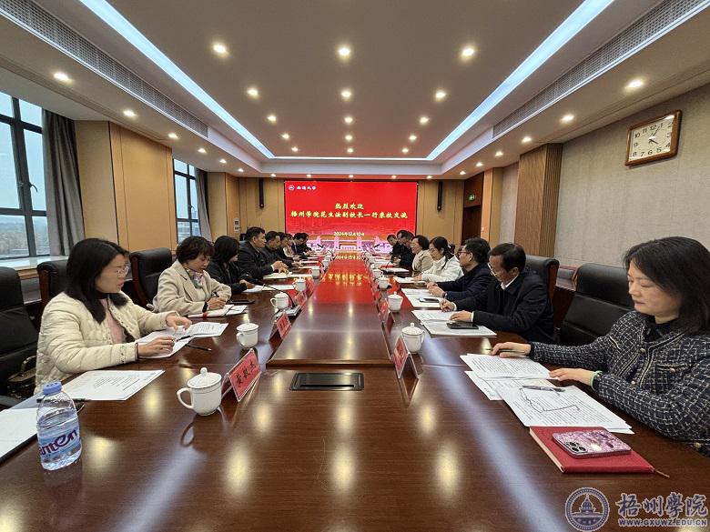 12月10日下午,调研组来到南通大学,参观了学校校史馆和范曾艺术馆,随后召开了座谈会,座谈会由莫晨宇副校长主持。会上,陈玉娟副校长全面介绍了南通大学的办学历史、特色优势及取得的成果等,范生汝副校长介绍了我校基本情况,说明了学习交流的目的和内容。随后,南通大学各相关部门领导分别介绍了部门的工作经验及做法。