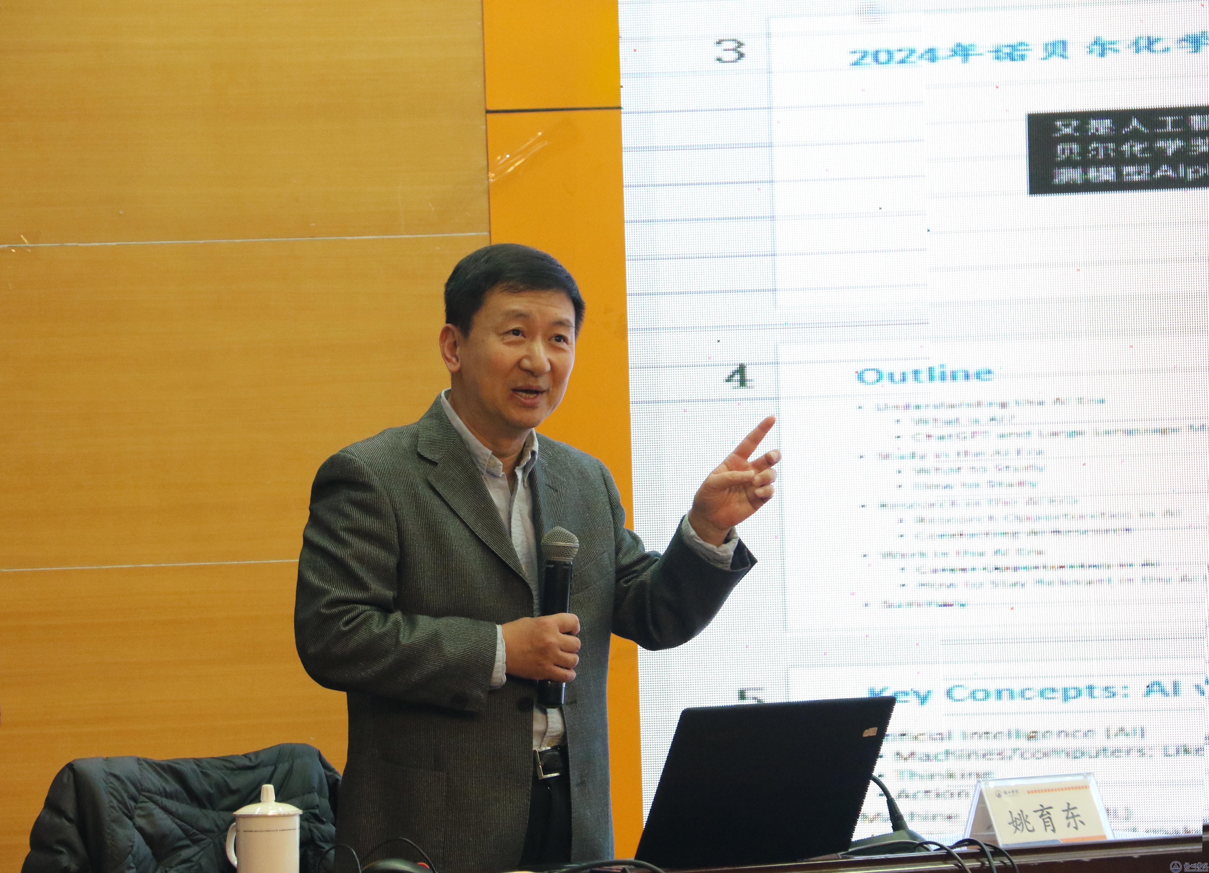 在互动环节中,姚院士针对师生提出的使用AI时所造成的隐私安全能否得到保障,大学生如何培养独特于AI的能力等问题分享了自己的看法与理解。他认为,大学生需提升辨别与思考能力,在数据共享与安全间寻求平衡,确保技术造福全人类;大学生要平衡知识学习与项目实践,结合自身规划,积累实践经验,提升综合素养,为投身人工智能相关职业做好准备,积极拥抱人工智能发展浪潮,以适应人工智能时代的发展需求。