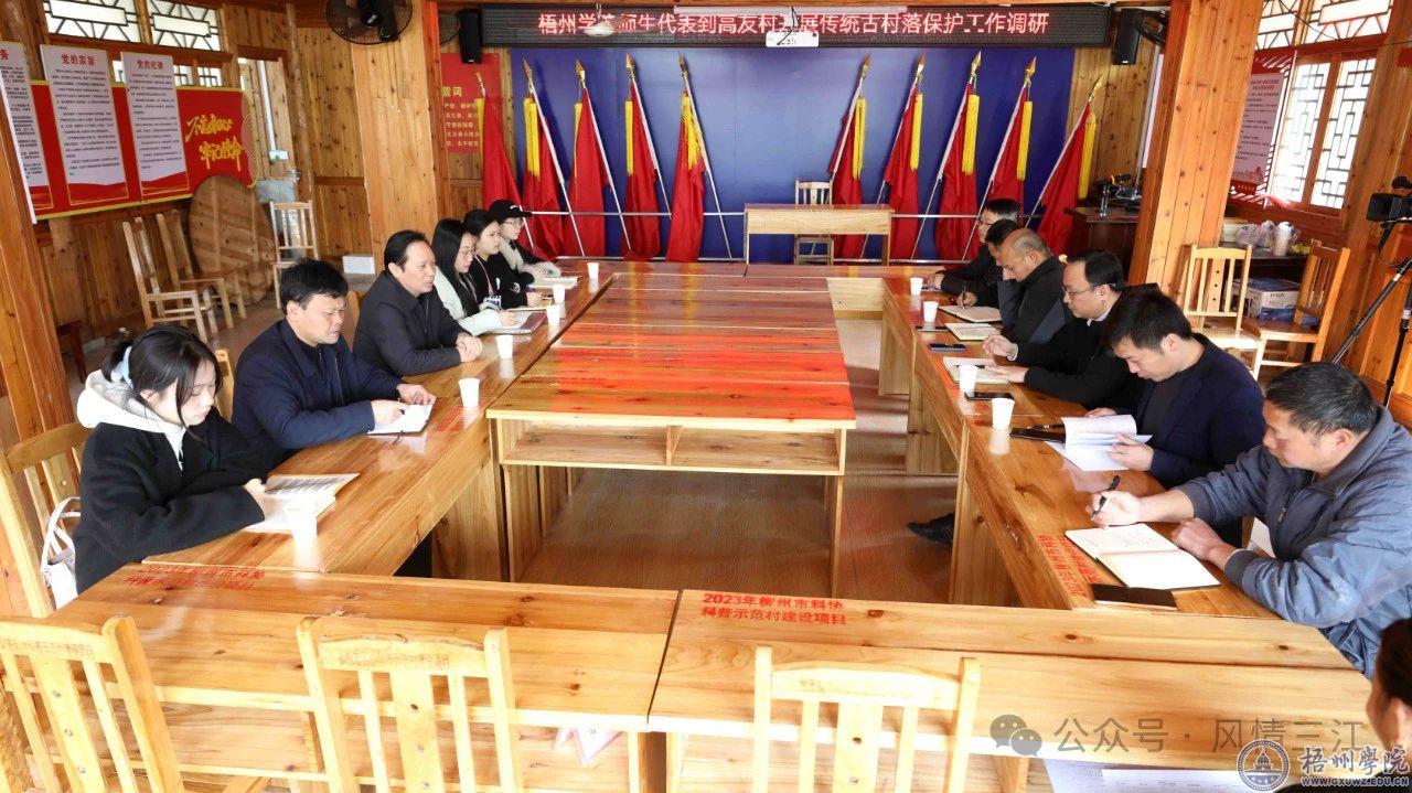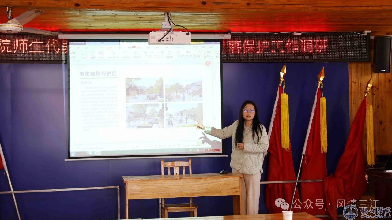 活动中,双方围绕“传统村落保护与发展”深入展开经验交流,梧州学院宝石与艺术设计学院环境设计专业吴薇老师展示高友村侗寨景观设计及村寨公共建筑设计方案,并无偿赠送给本地村委会,为保护和发展古村落提供参考。政校企三方均表示后续将在人才培养、科学研究、技术创新等多个维度开展深入合作,特别是在传统村落的保护与发展上,实现资源共享、优势互补。