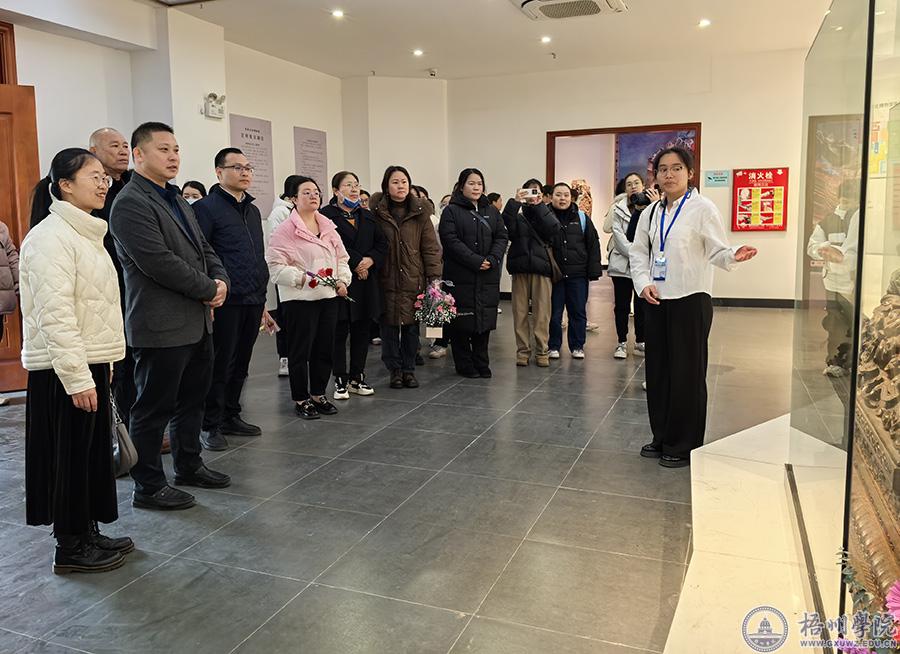 活动在韦天峰、欧广明的致辞中拉开序幕。艺术插花环节,在插花师的带领和讲解下,女性代表们精心设计了自己的插花作品,并分享了个人的感悟;参观宝石文化博物馆环节,沉浸式的参观,让参与者近距离的欣赏天然宝石、宝石艺术设计作品的风采,深入解了梧州人工宝石产业的发展历史,领略了艺术设计与本土特色产业融合的魅力。活动的高潮是全体人员在梧州学院体育馆三楼进行的集体舞蹈展示,参与者在欢快热烈的氛围中展现了女性的活力与风采。