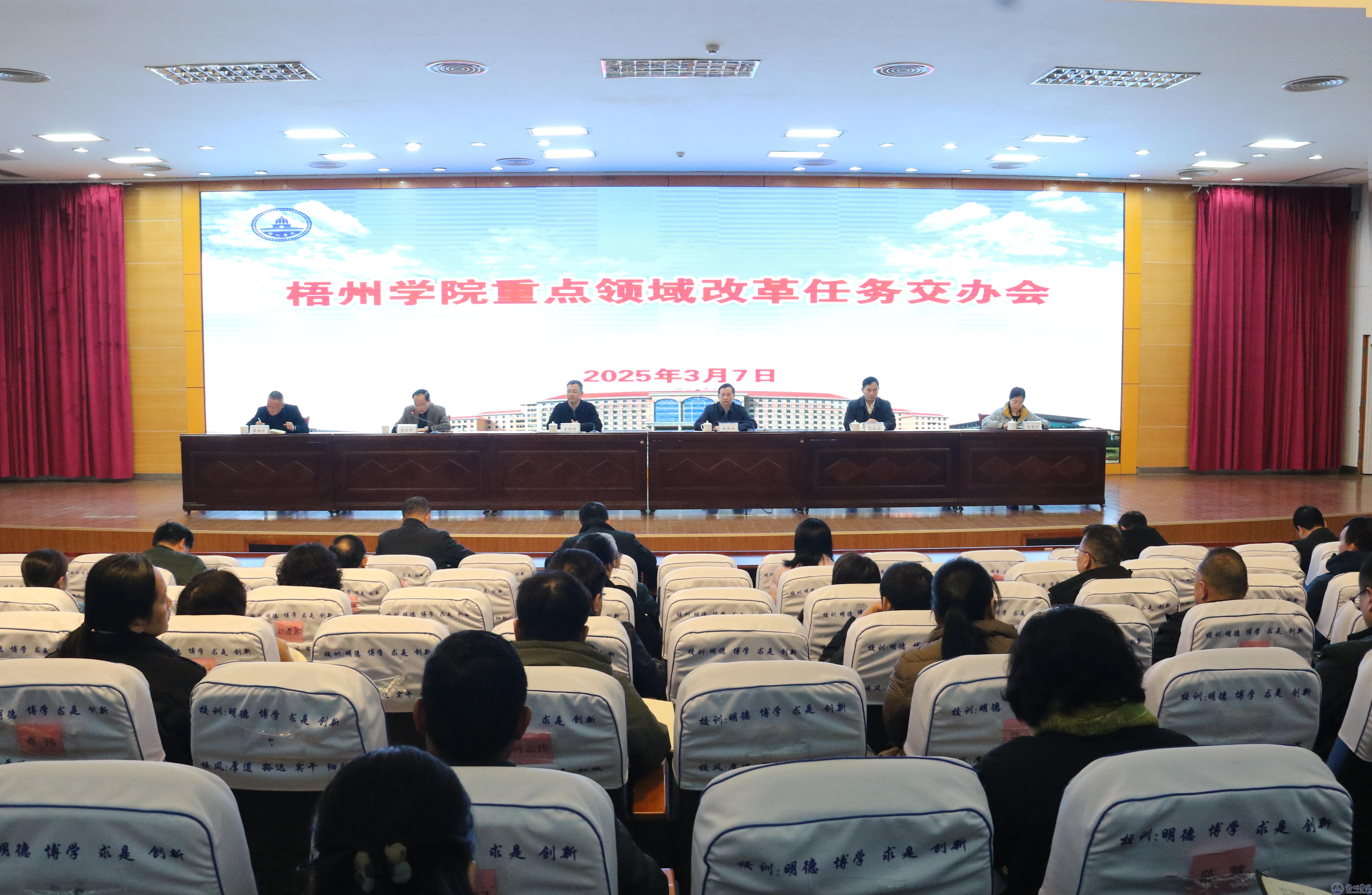 3月7日上午,学校在明理楼一楼学术报告厅召开重点领域改革任务交办会,学校领导童晓晖、麻新纯、梁业华、范生汝、覃雄彪、莫晨宇出席会议,机关全体科级以上干部、二级学院党政主要负责人参加会议。会议由学校党委副书记梁业华主持。